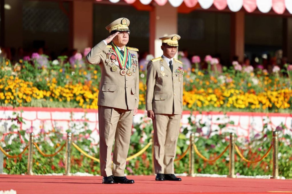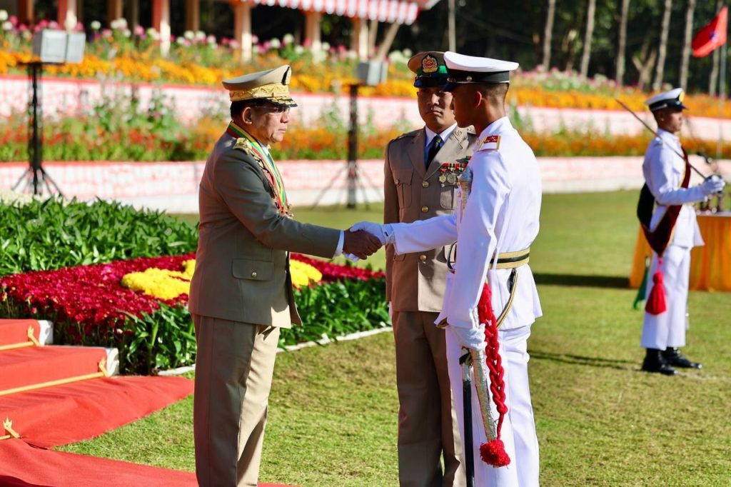 စစ်တက္ကသိုလ် ဗိုလ်လောင်းသင်တန်းအမှတ်စဉ် (၆၆) သင်တန်းဆင်းဂုဏ်ပြုစစ်ရေးပြ အခမ်းအနားကို ယနေ့ နံနက်ပိုင်းတွင် ပြင်ဦးလွင်မြို့၊ စစ်တက္ကသိုလ် စစ်ရေးပြကွင်း၌ ကျင်းပပြုလုပ်ရာ နိုင်ငံတော်စီမံအုပ်ချုပ်ရေးကောင်စီ (SAC)ဥက္ကဋ္ဌ တပ်မတော်ကာကွယ်ရေးဦးစီးချုပ် ဗိုလ်ချုပ်မှူးကြီး သတိုးမဟာသရေစည်သူ သတိုးသီရိသုဓမ္မ မင်းအောင်လှိုင် တက်ရောက်မိန့်ခွန်း ပြောကြားခဲ့သည်။