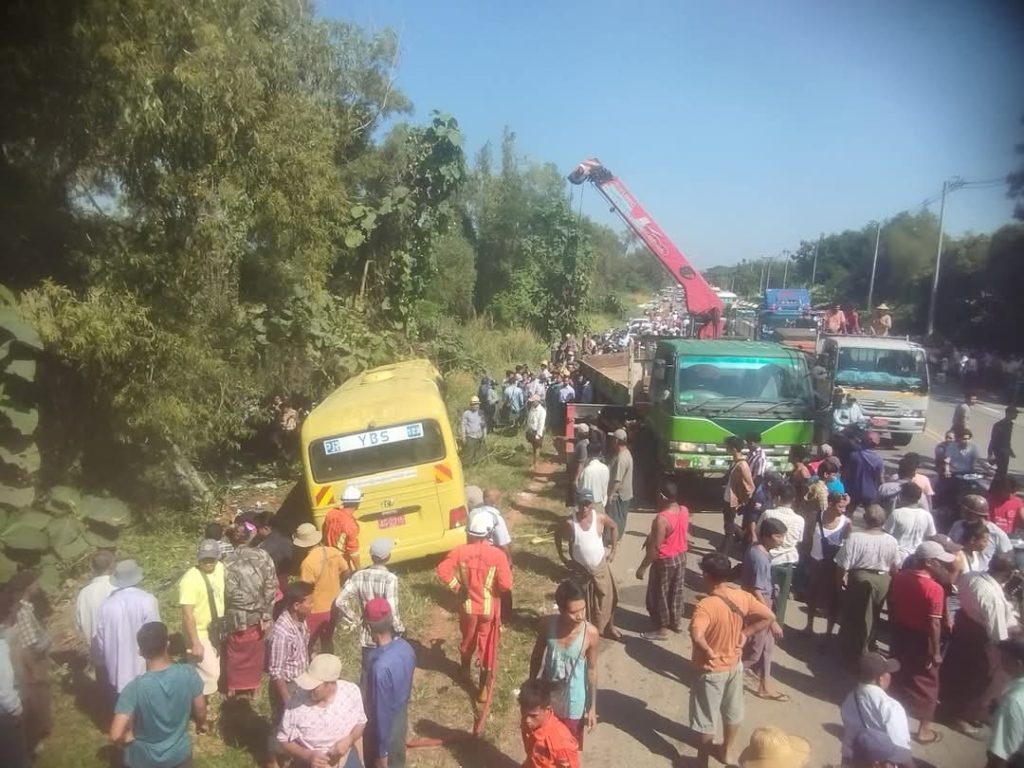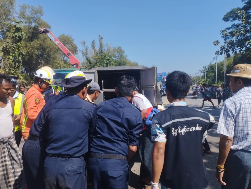 မြေပြင်အကူအညီ သွားရောက်ခဲ့တဲ့ ခိုကိုးရာမဲ့ဘိုးဘွားများစောင့်ရှောက်ကူရေး အသင်းမှ တာဝန်ရှိသူက ” ၁၀၆ကားပေါ် က ၄ ဦး ပွန်းပဲ့ ထိခိုက််တယ်။ ၁၂၃ ကတော့ တစ်ဦးသေ ၄ ဦးဒဏ်ရာပြင်းထန်နဲ့ ၁၅ ဦးက မစိုးရိမ်ရ ဒဏ်ရာတွေ ရတယ်။ ကလေးကတော့ ပွန်းပဲ့ ဒဏ်ရာလောက်ပဲ ရတာပါ။ မိခင်ကတော့ နေရာတင်သေတယ် ။ ကလေးအသက်က ၅ နှစ်ဝန်းကျင်အရွယ် ယောကျာ်းလေးပါ”လို့ MT News ကို ပြောပါတယ်။
