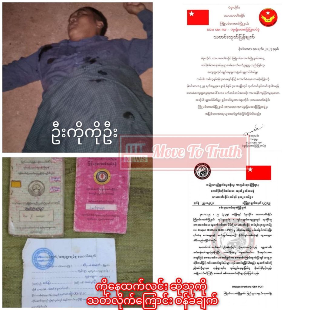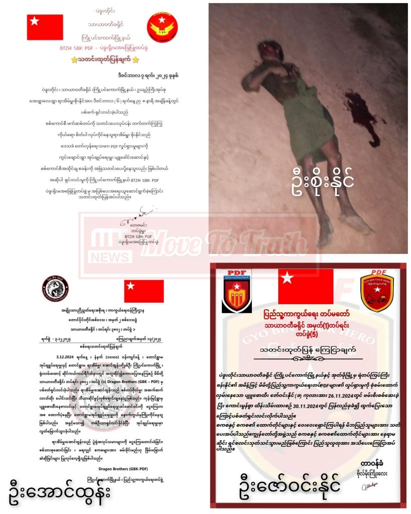 ပလုံကောက်သူ၊ နှီးရောင်းသူပါမချန် သတင်းပေး၊ ဒလန်စွပ်စွဲကာ နေ့စဥ်လူသတ်နေသည့် NUG ဩဇာခံ ကြို့ပင်ကောက် PDF က ယခုရက်ပိုင်းအတွင်း ကိုးယောက်မြောက်အဖြစ် လူတစ်ဦးကို ထပ်မံသတ်ဖြတ်လိုက်ကြောင်း ဝန်ခံချက် ထုတ်ပြန်ထားသည်။