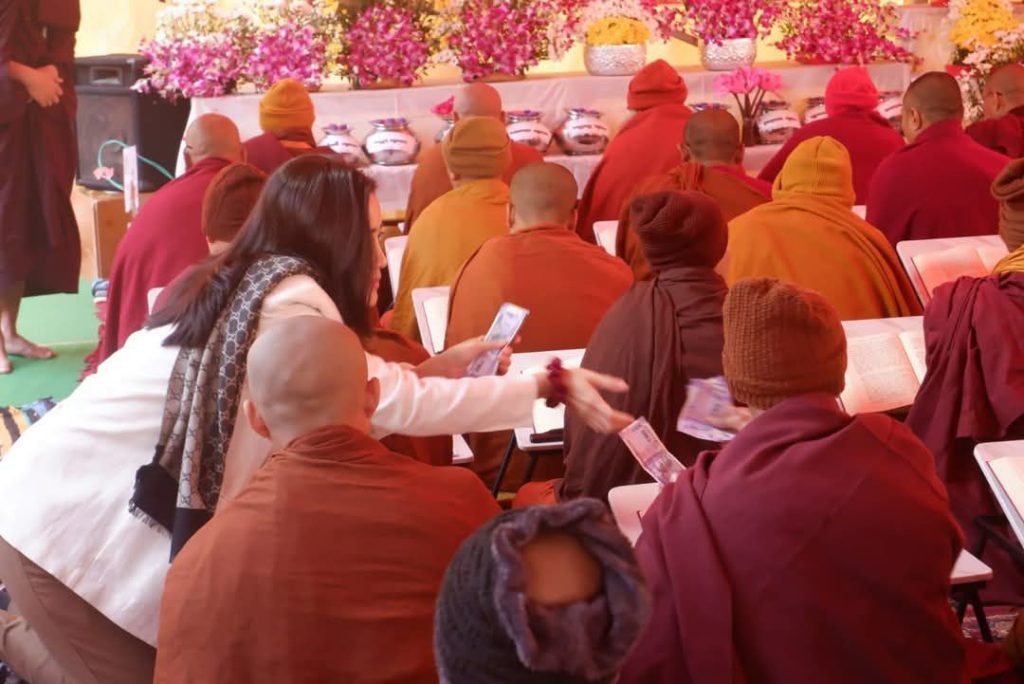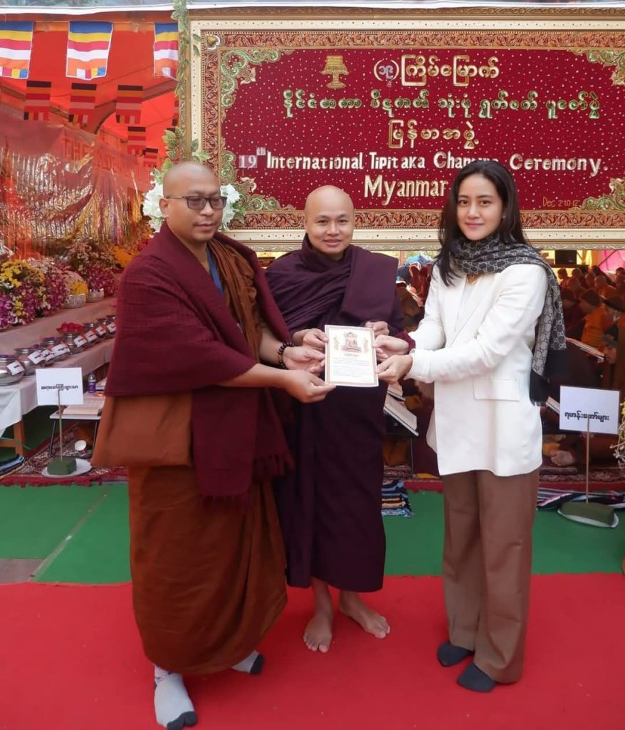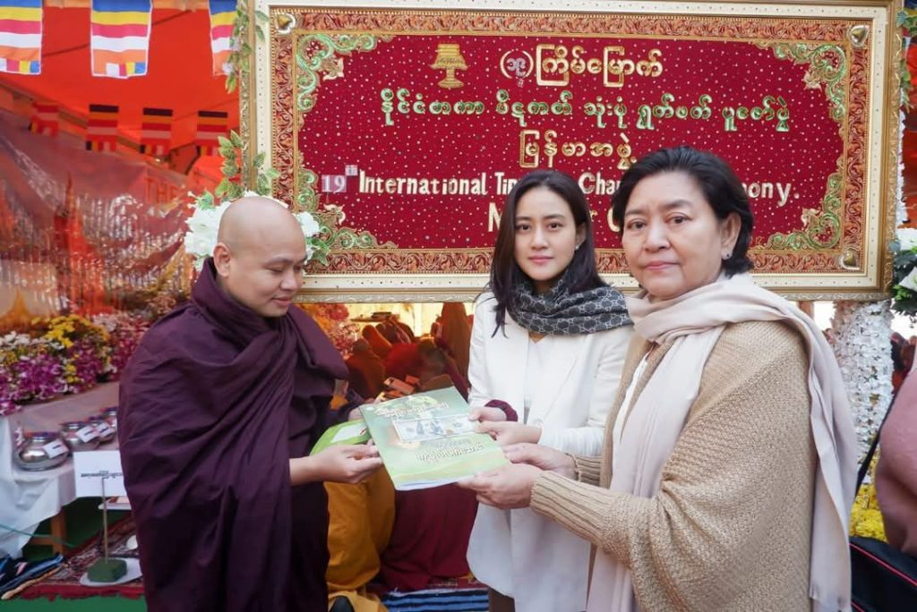 “ယနေ့ တီဖူးမွေးနေ့ကို ဗုဒ္ဓဂါယာရဲ့ ဘုရားရှင်ပွင့်တော်မူတဲ့မဟာဗောဓိညောင်ပင်မှာ ရောက်နေတုန်း ထင်မှတ်မထားဘဲ (၁၉)ကြိမ်မြောက်ကျင်းပနေတဲ့ နိုင်ငံတကာပိဋကတ်သုံးပုံရွတ်ဆို ပူဇော်ပွဲမှာ ရတနာအောင်မြေဆရာတော်ဘုရားကျေးဇူးတော်နဲ့ သံဃာအပါး ၂၀၀ ကျော်နဲ့ မယ်သီလရှင်တွေကို နဝကမ္မဝတ္ထုတွေ ဆက်ကပ်လှူဒါန်းခွင့်ရခဲ့ပါတယ်။ ခုနစ်ရက်သားသမီးတွေ အားလုံး တီဖူးမွေးနေ့ကုသိုလ်ကို ထပ်တူရကြစေဖို့ အားလုံးမျှဝေပေးပါတယ်နော်” လို့ သရုပ်ဆောင် ဖူးဖူးက ပရိသတ်သိအောင် ပြောပါတယ်။