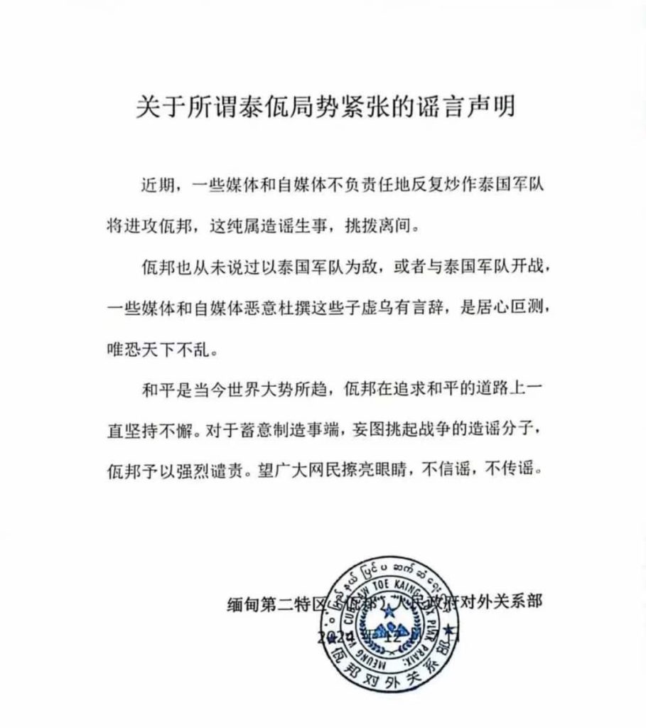 ပြီးခဲ့တဲ့ နိုဝင်ဘာ ၂၅ ရက်က ထိုင်း – မြန်မာနယ်စပ်၊ မယ်ဟောင်ဆိုင်ခရိုင် အတွင်းမှာရှိတဲ့ “ဝ”ပြည် သွေးစည်းညီညွတ်ရေး တပ်မတော် UWSA ရဲ့ စစ်တပ်စခန်း (၇) ခုကို ဒီဇင်ဘာ ၁၈ ရက်နေ့ နောက်ဆုံးထားပြီး ဖယ်ပေးဖို့ ထိုင်းတော်ဝင်စစ်တပ်က ထုတ်ပြန်ခဲ့သလို ထိုင်းသတင်းဌာနတွေမှာလည်း ရေးသားခဲ့ကြအပြီးမှာ မြန်မာပြည်တွင်း၊ ပြည်ပနဲ့ တခြားသော မီဒီယာတွေက ထိုင်းစစ်တပ်နဲ့ “ဝ” တပ်ကြား စစ်ရေးတင်းမာမှုပြင်ဆင်နေပြီလို့ ကောလဟာလသတင်းတွေကို မဟုတ်မမှန် ရေးသားခဲ့ကြပြီး လူထုတွေကြား မလိုလားအပ်တဲ့ စိုးရိမ်မှုတွေ ရှိခဲ့တယ်လို့ “ဝ” ပြည်နယ် ပြင်ပဆက်ဆံရေးဌာနက ဒီဇင်ဘာ ၈ ရက်နေ့ ရက်စွဲနဲ့ ထုတ်ပြန်ခဲ့ပါတယ်။