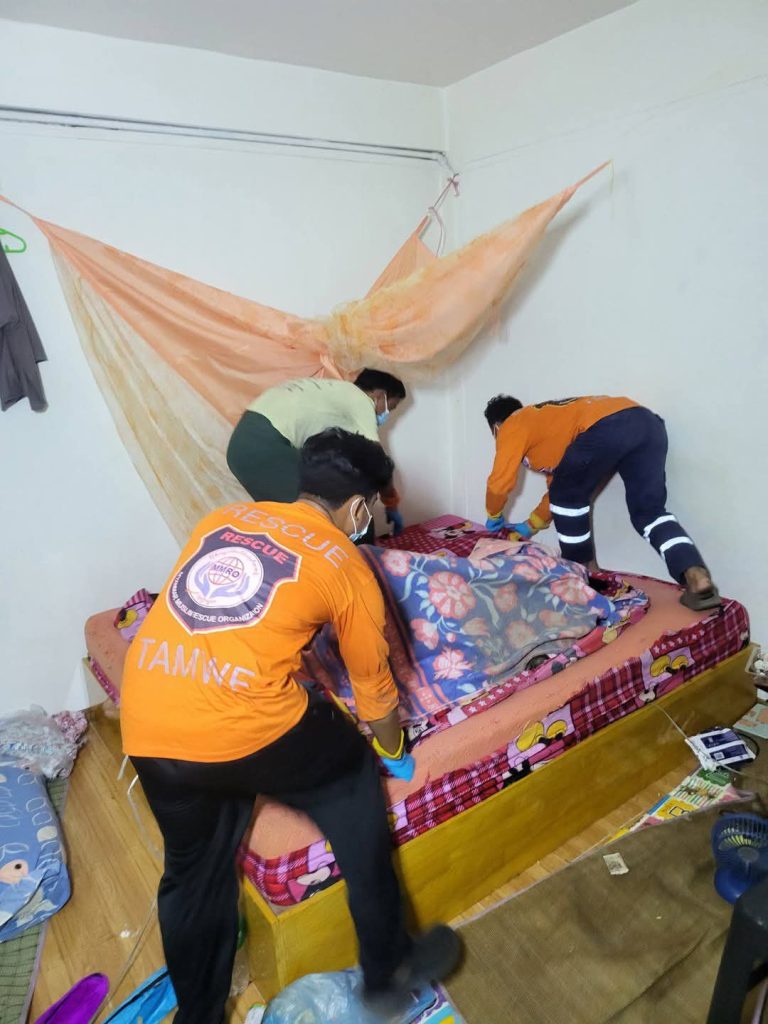 ဖြစ်စဥ်မှာ ယမန်နေ့ည ၇ နာရီခွဲခန့်တွင်၊ ရန်ကုန်တိုင်းဒေသကြီး၊ တာမွေမြို့နယ်၊ တာမွေကြီး (က+ဂ) ရပ်ကွက်၊ ၁၆၃ လမ်းတွင် အသက် ၃၅ နှစ်အရွယ် မခင်ခင်မော်ဆိုသူ အမျိုးသမီးသည် နေအိမ်တိုက်ခန်းအတွင်း ပုပ်ပွ သေဆုံးနေကြောင်း ကြားသိရသဖြင့် သက်ဆိုင်ရာ တာဝန်ရှိသူများက လာရောက်စစ်ဆေးမှုပြုခဲ့ကြသည်။ စစ်ဆေးမှုများ ပြုလုပ်ပြီးနောက် သေဆုံးခန္ဓာကိုယ်အား လာရောက်သယ်ယူ ရွှေ့ပြောင်းပေးရန် သက်ဆိုင်ရာ အဖွဲ့အစည်း တာဝန်ခံမှ အသင်းသို့ အကြောင်းကြားလာသဖြင့် အဆိုပါဖြစ်စဥ်သို့ YRO အဖွဲ့ဝင် “မြန်မာမွတ်စလင်မ်-ပရဟိတအသင်း”မှ နာရေးတင်ယာဥ်နှင့်အတူ စေတနာ့ဝန်ထမ်း ၄ ဦးတို့ ကူညီရန် သွားရောက်ခဲ့ကြသည်ဟု သိရသည်။