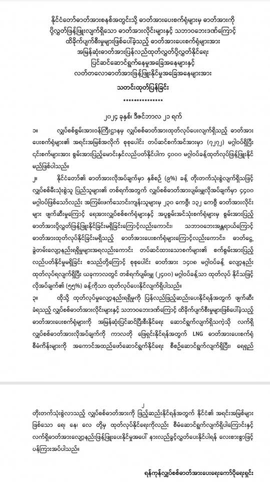 သဘာဝဘေးနှင့် အကြမ်းဖက်များ၏ ဖျက်ဆီးမှုကြောင့် လျှပ်စစ်လိုအပ်ချက်၏ ၅၅ ရာခိုင်နှုန်းသာ ထုတ်လုပ်နိုင်တော့သဖြင့် လျှပ်စစ်ဓာတ်အားလိုအပ်ချက်ကို ကာလတို ဖြေရှင်းနိုင်ရန် LNG ဓာတ်အားပေးစက်ရုံ စီမံကိန်းများကို အကောင်အထည်ဖော်ဆောင်ရွက်နိုင်ရေး စီစဉ်ဆောင်ရွက်နေကြောင်း ရန်ကုန်လျှပ်စစ်ဓာတ်အားပေးရေးကော်ပိုရေးရှင်း၏ နိုင်ငံတော်ဓာတ်အားစနစ်အတွင်းသို့ ဓာတ်အားပေးစက်ရုံများမှ ဓာတ်အားကို ပို့လွှတ်ဖြန့်ဖြူးလျက်ရှိသော ဓာတ်အားလိုင်းများနှင့် သဘာဝဘေးဒဏ်ကြောင့် ထိခိုက်ပျက်စီးမှုများဖြစ်ပေါ်ခဲ့သည့် ဓာတ်အားပေးစက်ရုံများအား အမြန်ဆုံးဓာတ်အားပြန်လည်ထုတ်လွှတ်ပို့လွှတ်နိုင်ရေး ပြင်ဆင်ဆောင်ရွက်နေမှုအခြေအနေများနှင့် လတ်တလောဓာတ်အားဖြန့်ဖြူးနိုင်မှုအခြေအနေများဆိုင်ရာ ထုတ်ပြန်မှုအရ သိရသည်။