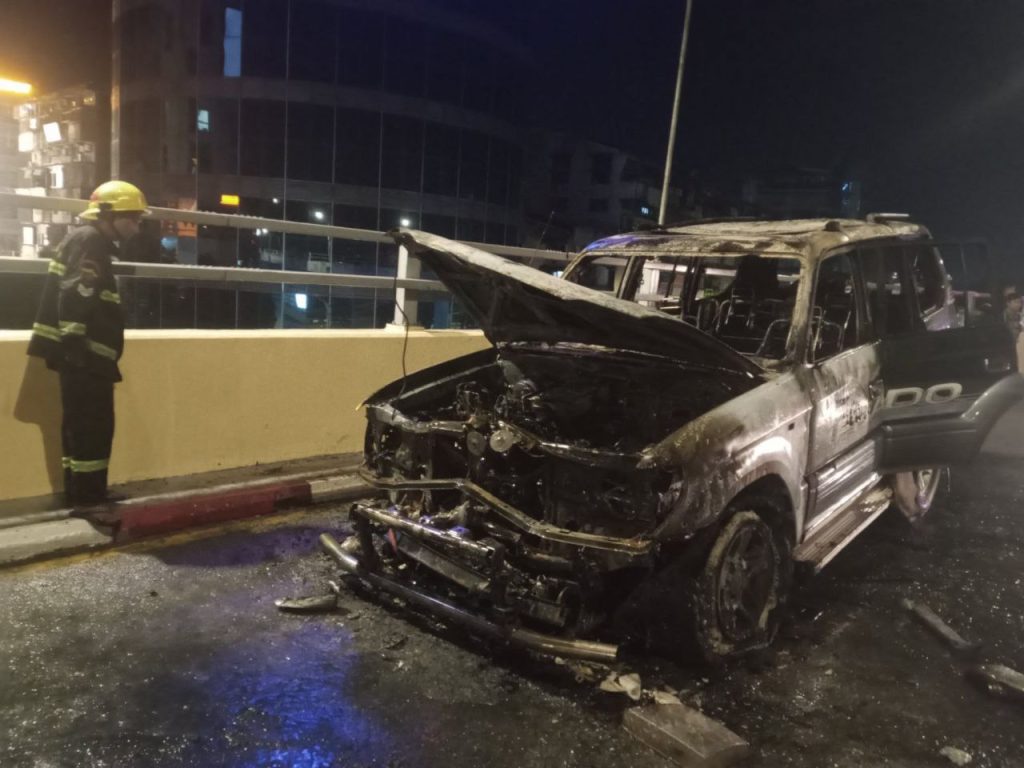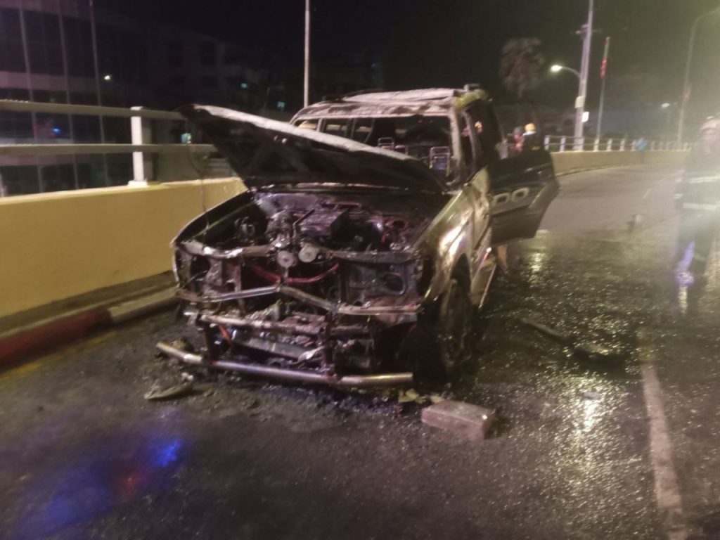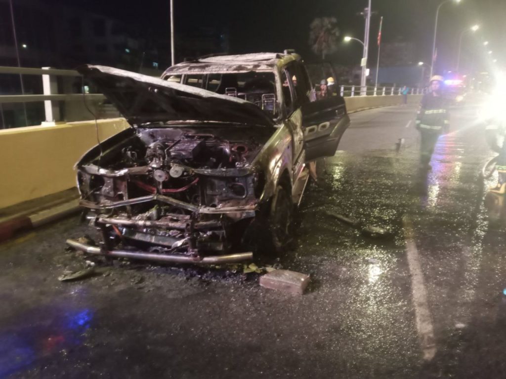 ဖြစ်စဉ်က ဒီဇင်ဘာ ၂၅ ရက်နေ့ မနက် ၂ နာရီခွဲအချိန်က လှည်းတန်းဘက်ကနေ အရှိန်နဲ့ မောင်းနှင်လာတဲ့ကားက တံတားပေါ်ရှိ ပလက်ဖောင်းကို တိုက်ကာ ပလက်ဖောင်းပေါ်ကျော်တက်ရောက်ရှိနေတာကို သတိမထားမိဘဲ ဆက်မောင်းရာက အင်ဂျင် အပူလွန်ကဲမှုဖြစ်ပြီး မီးလောင်တာလို့ သိရပါတယ်။