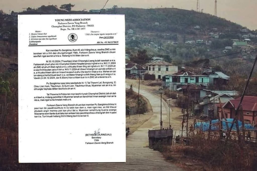 အိန္ဒိယ-မြန်မာနယ်စပ် မီဇိုရမ်ပြည်နယ်၊ ဖာရ်ကွန်ရွာသားဖြစ်တဲ့ အသက် ၄၅ နှစ်အရွယ် ပူးဆန်ဂ်ကိမာ ( Pu Sangkima) ဟာ မြန်မာစစ်ဘေးရှောင်အမျိုးတွေဆီလာလည်တဲ့ မြန်မာနိုင်ငံသား ချင်းလူမျိုး သုံးဦးရဲ့ရိုက်နှက်မှုကြောင့် ဒီဇင်ဘာလ ၂၄ ရက်မှာသေဆုံးသွားတယ်လို့ Farkawn Young Mizoran Association က ထုတ်ပြန်ထားပါတယ်။