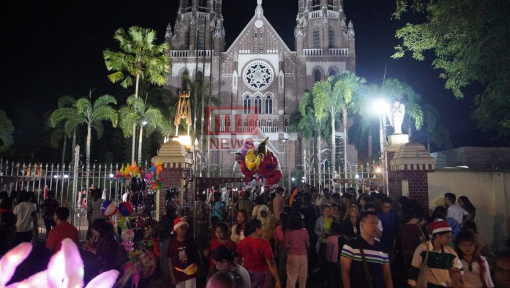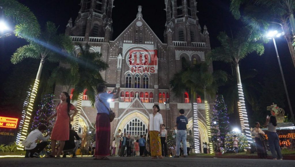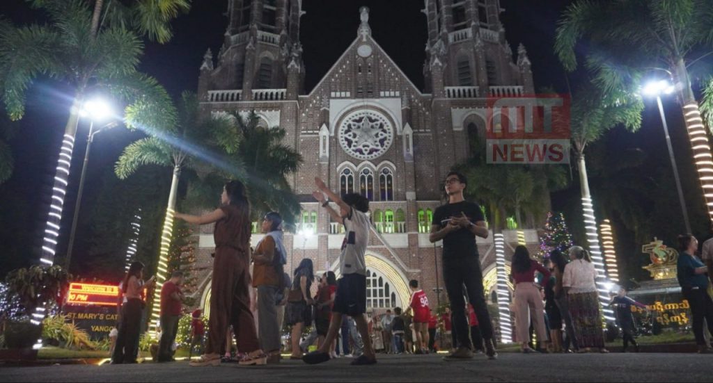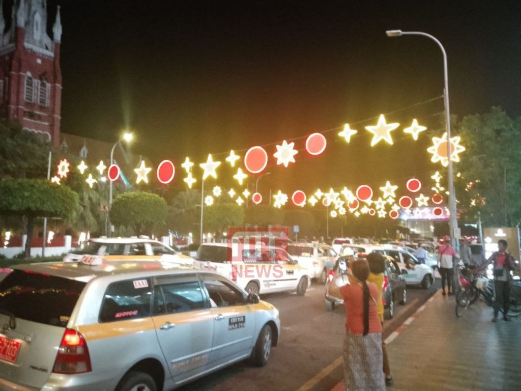 ဒီဇင်ဘာလ ၂၅ ရက် ခရစ္စမတ်နေ့ ညပိုင်းမှာ ရန်ကုန်တိုင်း၊ ဗိုလ်တထောင်မြို့နယ်၊ ဗိုလ်အောင်ကျော်လမ်းရှိ စိန့်မေရီကာဒီဒြယ်ဘုရားကျောင်းထံ လာရောက်သူအချို့နဲ့ စည်ကားခဲ့သလို ရန်ကုန်မြို့အတွင်း ခရစ္စမတ်နဲ့ နှစ်သစ်ကူးအကြို မီးအလှဆင်ထားမှုတွေရဲ့ မြင်ကွင်းတွေဖြစ်ပါတယ်။