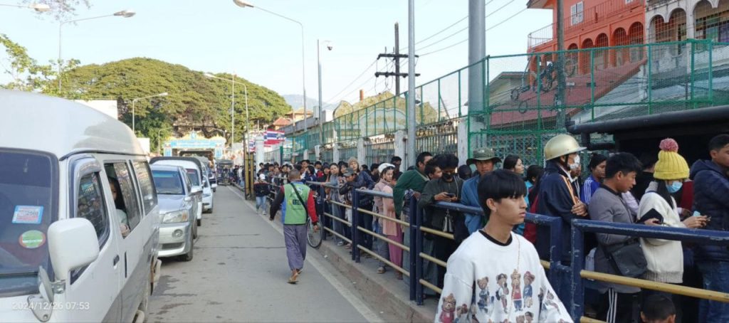 ရှမ်းပြည်နယ်အရှေ့ပိုင်း တာချီလိတ် – မယ်ဆိုင်၊ ထိုင်း မြန်မာချစ်ကြည်ရေး အမှတ် (၁) တံတားကနေ ဖြတ်သန်းသွားလာမယ့် ဒေသခံတွေအနေနဲ့ ဒီနေ့ ဒီဇင်ဘာ ၂၆ ရက်ကစပြီး IMMIGRATION CONTROL CARD( ICC ) အသစ်ပြန်လည်လဲလှယ်ပေးနေပြီး ကတ်အသစ်လဲပြီးပါက အရင်လို ၇ ရက် တစ်ပတ်နေထိုင်ခွင့်မဟုတ်ဘဲ ၁၄ ရက်အထိ နေထိုင်ခွင့်ရတယ်လို့လည်း တာချီလိတ်ဒေသခံတစ်ဦးထံကနေ သိရပါတယ်။