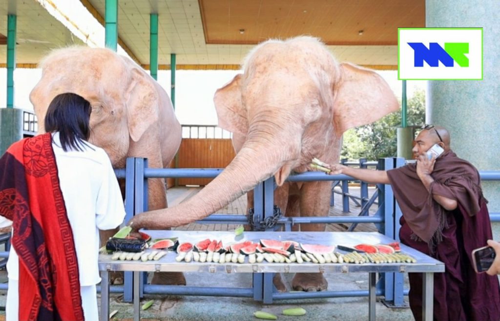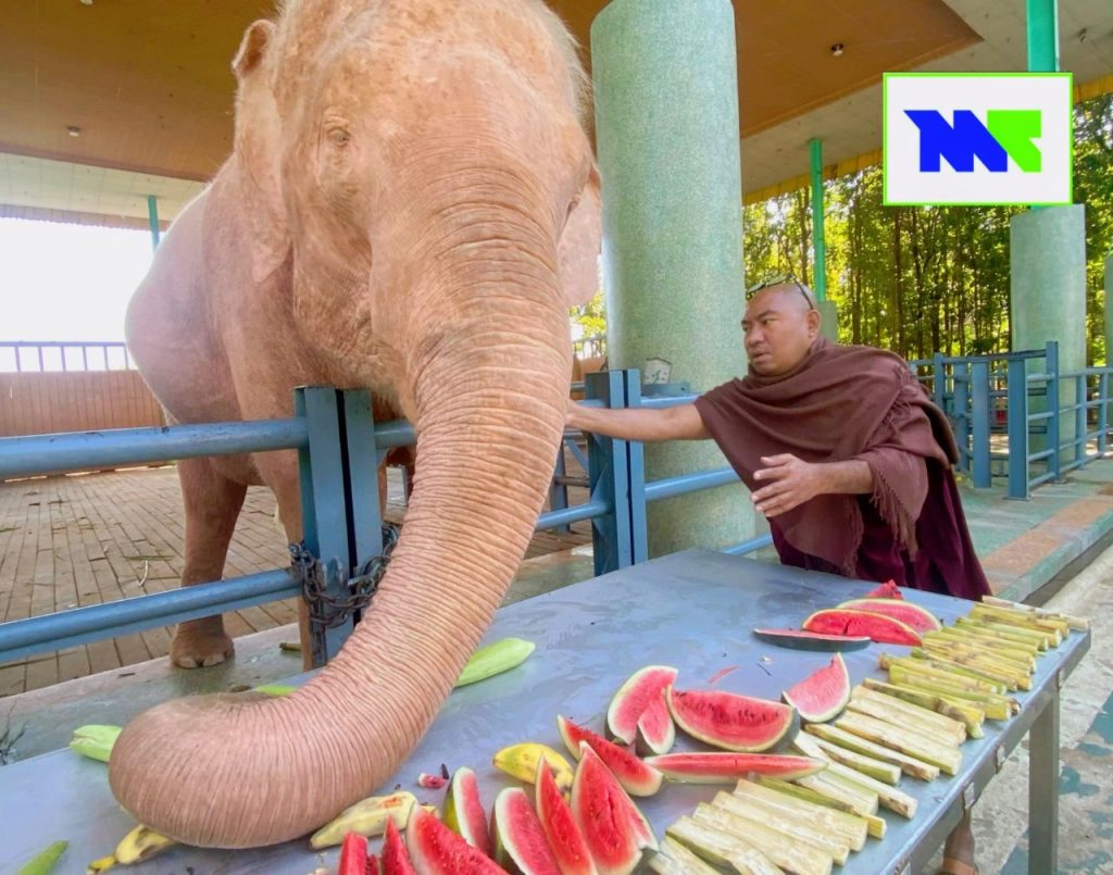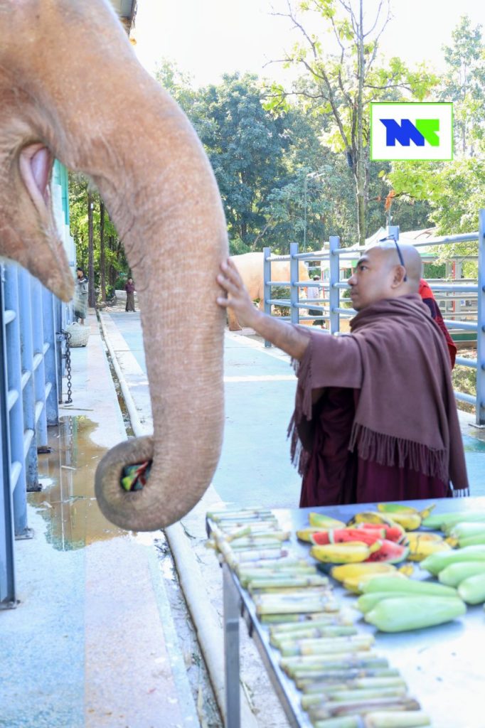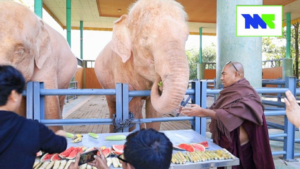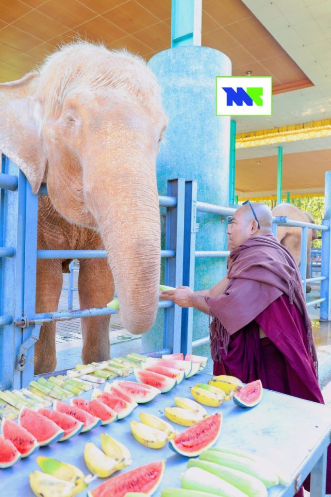 “ကျွန်တော့်တို့ ဆင်ဖြူတော်ရတနာ ဥယျာဉ်မှာ ဆင်တွေကို ဘူဖေးအနေနဲ့ ကျွေးမွေးကြတာဆိုရင် ပုံမှန်ပါပဲ။ သူ့အလှူရှင်နဲ့သူတော့ ပုံမှန်တော့ ဆင်တွေ လာပြီးတော့ ဘူဖေးကျွေးလှူကြတာ ရှိကြပါတယ်။ ဒီအထဲက အသက်အကြီးဆုံးဆင်ကတော့ ၅၄ နှစ်ရှိပါပြီ။ ပုံမှန်ဘုရား ဧည့်သည်တွေလည်း လှူပြီး ကျွေးမွေးကြတာရှိပါတယ်” လို့ ဆင်ဖြူတော်ရတနာ ဥယျာဉ်က တာဝန်ရှိသူတစ်ဦးက ပြောပါတယ်။