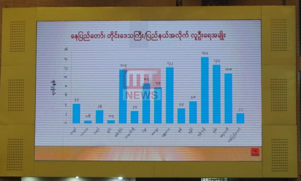 ၂၀၂၄ ခုနှစ်တွင် စာရင်းမကောက်ယူနိုင်သည့် ဒေသများအတွက် လူဦးရေပညာအရ စိစစ်ရရှိသည့် လူဦးရေအပါအဝင် မြန်မာနိုင်ငံ၏ လူဦးရေသည် ၅၁ ဒသမ ၃ သန်းဖြစ်ကာ ပြီးခဲ့သည့် ၁၀ နှစ်က လူဦးရေထက် အနည်းငယ်လျော့ကျသွားကြောင်း ယနေ့တွင် နေပြည်တော်ရှိ MICC-2 တွင် ပြုလုပ်သည့် ၂၀၂၄ ခုနှစ်၊ လူဦးရေနှင့် အိမ်အကြောင်းအရာသန်းခေါင်စာရင်း၏ ရှေ့ပြေးလူဦးရေစာရင်း ထုတ်ပြန်ကြေညာချက်မှ သိရသည်။
