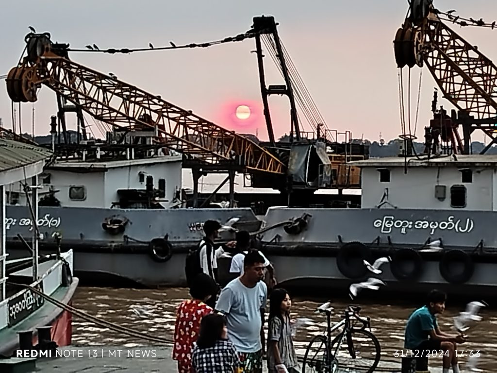 ၂၀၂၄ ခုနှစ်ရဲ့ နောက်ဆုံးညနေနဲ့ ၂၀၂၅ ကြိုဆိုပွဲ Countdown တွေဟာ အေးချမ်းသာယာတဲ့ ရန်ကုန်၊ မန္တလေး၊ နေပြည်တော်လို မြို့ကြီးတွေမှာ အစိုးရအစီအစဥ်နဲ့ ကျင်းပတဲ့ အခမဲ့ Countdown ပွဲတော်တွေရှိသလို အခြေခံလူတန်းစားတွေနဲ့ လားလားမှမသက်ဆိုင်တဲ့ အခကြေးငွေ ကျပ် ၃၀၀၀၀ ကနေ ကျပ်နှစ်သိန်းနဲ့အထက်ပေးမှ ပျော်ရွှင်ရမဲ့ ဟိုတယ်တွေက Private Countdown တွေ၊ မြန်မာနဲ့ ကမ္ဘာကျော် DJ တွေ ဖျော်ဖြေမယ့် Yangon Countdown Festival တွေလည်း အသက်ဝင်လှုပ်ရှားစပြုလာနေသလို လူစုလူဝေးကို ကြောက်တဲ့သူတွေကလည်း လူနည်းပါးရာ ဆိပ်ကမ်းတွေနဲ့ ဗိုလ်တထောင်ဆိပ်လို နေရာမျိုးမှာ အပန်းဖြေတတ်ကြသလို ဇင်ယော်တွေလည်း ရောက်လာကြတဲ့ အခါသမယမို့ ဗိုတထောင်ကမ်းနားက ၂၀၂၄ ရဲ့ နောက်ဆုံးမြင်ကွင်းတချို့ကို MT News က ရိုက်ကူးတင်ဆက်ပေးလိုက်ပါတယ်။