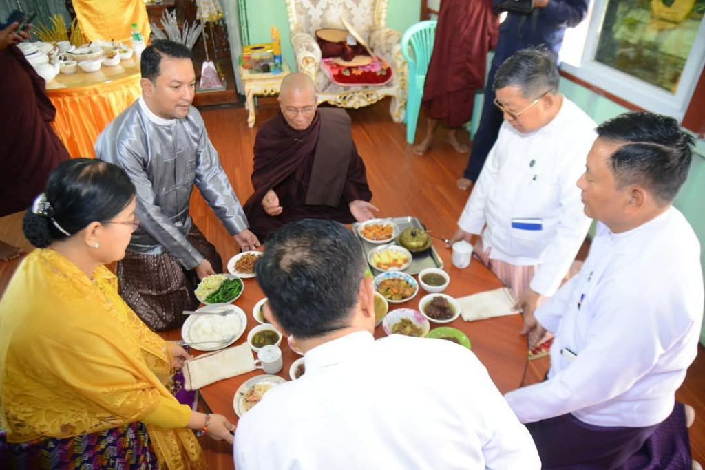 ဒီကံသာဓမ္မရိပ်သာကျောင်းတိုက် ပဓာန နာယက ဆရာတော်ကြီးနဲ့ ကျောင်းရှိသံဃာတော်တွေကို နေ့ဆွမ်းဆက်ကပ်ခြင်း၊ သင်္ကန်းတွေ၊ မွေ့ယာနဲ့ စောင်တွေ၊ အလှူငွေတွေ နေ့ဆွမ်းတို့ကို ဆက်ကပ်လှူဒါန်းခြင်းဖြစ်ပါတယ်။ ဒါ့ပြင် သွားလာရန် ခက်ခဲသော နယ်စပ်နဲ့တောင်တန်းဒေသတွေမှာ သာသနာပြုနေကြတဲ့ ရဟန်းသံဃာတော် အရှင်သူမြတ်တွေ ဆွမ်းအခက်အခဲမဖြစ်စေဖို့အတွက် အလှူတော်ငွေ ကျပ် သိန်း ၁၀၀ တိတိကို ရေစက်သွန်းချ တရားတော် နာယူပြီး လှူဒါန်းခဲ့ပါတယ်လို့ ဆိုပါတယ်။