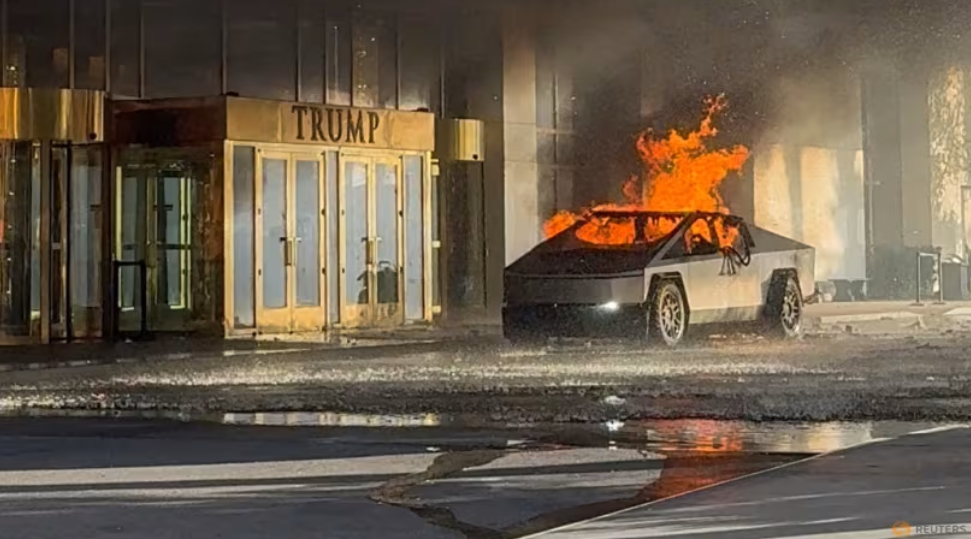 ကမ္ဘာကျော်ဘီလျံနာလည်းဖြစ်ပြီး အမေရိကန်ရွေးကောက်ခံသမ္မတဒေါ်နယ်ထရန့်နဲ့လည်း နိုင်ငံရေးအရ ကြီးမားတဲ့ဆက်နွှယ်မှုရှိတဲ့ Elon Musk ရဲ့ Tesla Cybertruck ဟာ နှစ်သစ်ကူးညမှာပဲ လာ့စ်ဗီးဂတ်စ်မှာရှိတဲ့ Trump Hotel ရှေ့ပေါက်ကွဲခဲ့ပြီး လူတစ်ဦးသေဆုံးခဲ့သလို အနည်းဆုံး ၇ ဦး ဒဏ်ရာရခဲ့ပါတယ်။