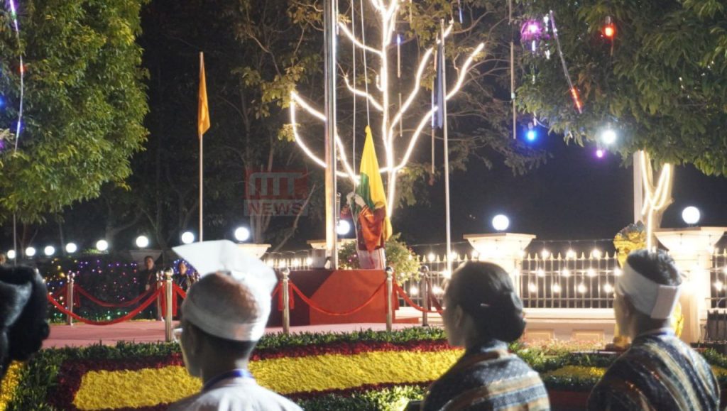 ၇၇ နှစ်မြောက် လွတ်လပ်ရေးနေ့ အထိမ်းအမှတ် အလံတင်အခမ်းအနားကို ယနေ့ နံနက် ၄ နာရီ ၂၀ မိနစ်တွင် နေပြည်တော်ရှိ မြို့တော်ခန်းမရှေ့ ရင်ပြင်၌ ကျင်းပခဲ့သည်။