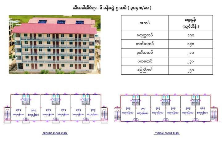 ဆောက်လုပ်ရေးဝန်ကြီးဌာန၊ မြို့ပြနှင့်အိမ်ရာဖွံ့ဖြိုးရေးဦးစီးဌာနက ဆောက်လုပ်သော ရန်ကုန်တိုင်းဒေသကြီး၊ သန်လျင်မြို့နယ်၊ သီလဝါအိမ်ရာတွင် ကျန်ရှိသော ၆ ခန်းတွဲ ၅ ထပ် ၆၁ ခန်း၊ ၈ ခန်းတွဲ ၅ ထပ် ၂၇ ခန်း၊ စုစုပေါင်း ၈၈ ခန်းကို အတိုးနှုန်းသက်သာသော ချေးငွေစနစ်ဖြင့် ချိတ်ဆက်၍ ၂၀၂၅ ခုနှစ်၊ ဇန်နဝါရီလတွင် ရောင်းချသွားမည်ဖြစ်ကြောင်း အသိပေးကြေညာထားသည်။
