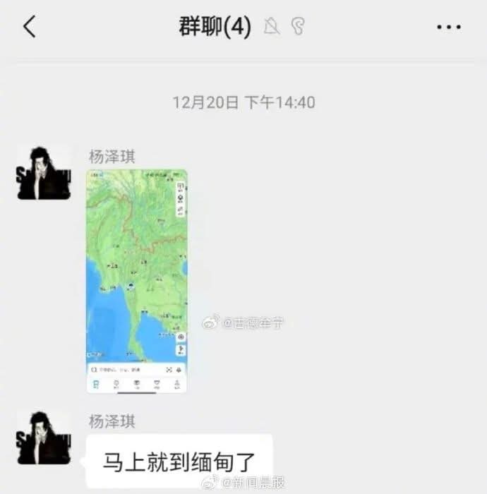 Yang ဟာလည်း Xingxing နဲ့ ဖြစ်စဥ်တူပြီး ရုပ်ရှင်ဇာတ်ကားရိုက်ကူးဖို့ စမ်းသပ်မှုအောင်မြင်ပြီးဖြစ်ကြောင်း WeChat မက်ဆေ့ခ်ျကို လက်ခံရရှိခဲ့အပြီးမှာ သူဟာ ထိုင်းနိုင်ငံဆီ လေယာဉ်အမှတ် VZ3719 နဲ့ ၂၀၂၄ ခုနှစ် ဒီဇင်ဘာ ၂၀ ရက် နံနက် ၁ နာရီ ၅၆ မိနစ်မှာ ပေကျင်းမြို့ ဒါဇင်းလေဆိပ်က ထွက်ခွာလာခဲ့သလို ထိုင်းနိုင်ငံ သုဝဏ္ဏဘူမိလေဆိပ်ကို ဒေသစံတော်ချိန် နံနက် ၆ နာရီ ၁၆ မိနစ်တွင် ရောက်ရှိခဲ့တာပါ။ လေဆိပ်ကထွက်ခွာပြီးနောက် ပေကျင်းစံတော်ချိန် မွန်းလွဲ ၂ နာရီ ၅၉ မိနစ်မှာ ထိုင်း-မြန်မာနယ်စပ်အနီးရောက်ရှိချိန် ထုတ်လုပ်ရေးအဖွဲ့က စီစဥ်ပေးထားတဲ့ အခြားယာဉ်တစ်စီးကို ပြောင်းရွှေ့လိုက်ပါသွားခဲ့တာပါ။