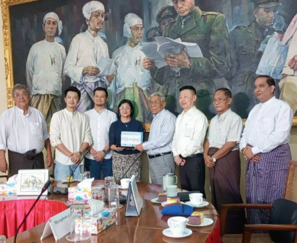 ယနေ့ ဇန်နဝါရီ ၉ ရက် နေ့လယ်ပိုင်းက (ဦး)ကျော်ဟိန်းမိသားစုနဲ့ အကယ်ဒမီ စိုင်းစိုင်းခမ်းလှိုင်တို့က ၁၆ ကြိမ်မြောက် မြန်မာနိုင်ငံရုပ်ရှင်အစည်းအရုံးကို ဆန်ဆီစားသောက်ကုန်လှူဒါန်းမှုအတွက် ကျပ်သိန်း ၁၀၀လှူဒါန်းခဲ့ကြပါတယ်။