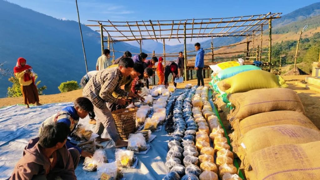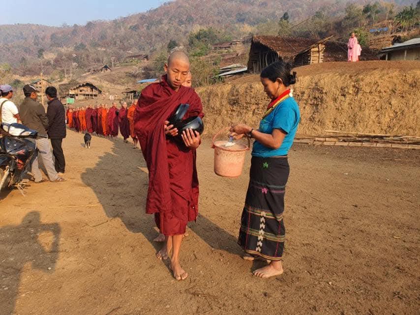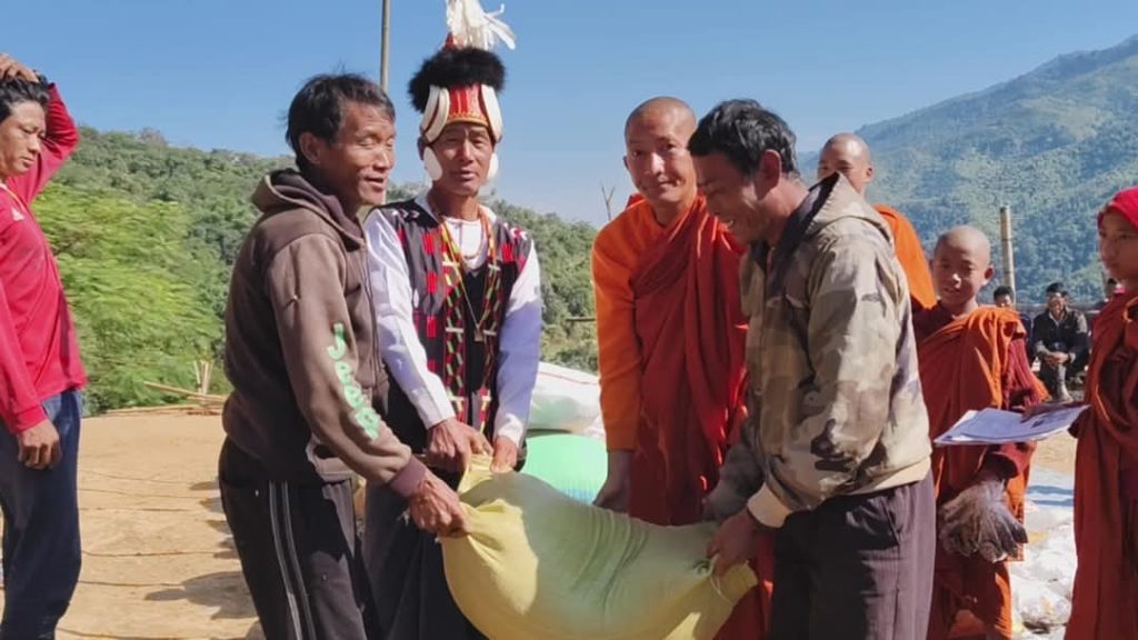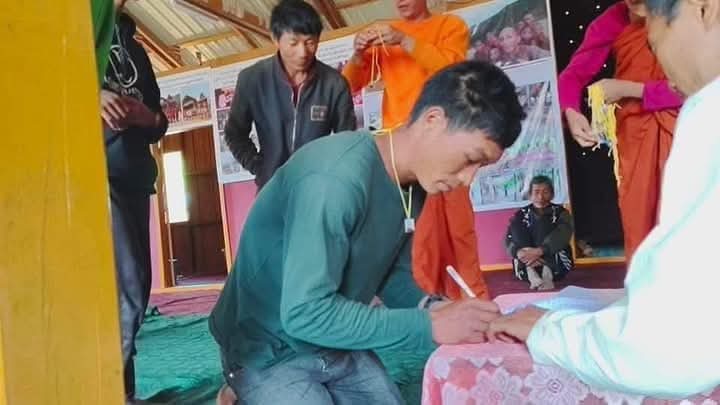 တစ်ဖက်မှာလည်း ဒီလိုခရစ်ယာန်တွေကြား ဗုဒ္ဓဘာသာခံတပ်ရွာ ပေါ်ထွန်းလာမှုကို ဆွေ့ဆွေ့ခုန် ထိုးနှက်ကြပေမဲ့ သဒ္ဓမ္မဇောတိကဓဇဘွဲ့တံဆိပ်တော်ရ အရှင်ပဏ္ဍိတကတော့ “အခြားရွာက အခြားဘာသာဝင်တွေကို ဦးဇင်း ဘာသာပြောင်းခိုင်းတာ မဟုတ်ပါဘူး။ ဗုဒ္ဓဘာသာရွာက ဗုဒ္ဓဘာသာဝင်တွေကိုပဲ သူတို့ညီညွတ်ရေးအတွက်၊ သူတို့ကလည်း လိုလားတဲ့အတွက် ရွာလူကြီးတွေ၊ ရွာစော်ဘွားတွေ၊ ရွာခံလက်ထောက်သာပြုတွေကိုယ်တိုင်က လိုလားတဲ့အတွက် ဦးဇင်းလုပ်တာပါ။ ဘယ်ဘာသာကိုမှ ထိခိုက် ပုတ်ခပ်ချင်တဲ့ ဆန္ဒမရှိဘူး။ ကိုယ့်ရွာ၊ ကိုယ့်နေရာလေး တည်တံ့ခိုင်မြဲအောင်၊ ညီညွတ်အောင်၊ ညီညွတ်မှလည်း ဆက်လက်လုပ်ဆောင်လို့ရမှာမို့လို့ လုပ်ဖြစ်ကြတာပါ။ ဝေဖန်တာက တချို့က ဒီ ဆန်တွေ၊ ဆီတွေ ပေးပြီး အတင်းဘာသာပြောင်းခိုင်းတာမျိုးလုပ်တယ်ဆိုတဲ့ အတွေးမျိုး၊ အရေးမျိုး တွေ့ရတယ်။ တကယ်က ရွာမှာ ၇၉ အိမ်မှာ ၇၈ အိမ်က ဗုဒ္ဓဘာသာပါ။ တစ်အိမ်က ဘာသာမပြောင်းချင်တဲ့ ခရစ်ယာန်ပါ။ သူတို့ ဆန်ဆီအလှူမလာပါဘူး။ ဒါပေမဲ့ ရွာလူကြီးက သူတို့အတွက် ခွဲဝေပို့ပေးပါတယ်။ ကျောင်းနဲ့ တစ်ရွာလုံးနဲ့ဆိုင်တဲ့ ပွဲတွေဆိုလည်း သူတို့လာကူညီပါတယ်။ သူတို့က လက်မှတ်ထိုးတဲ့အထဲ မပါပါဘူး။ သူတို့ကိုလည်း ဦးဇင်းက ဘာမှမပြော၊ ဘာဖိအားမှ မပေးပါဘူး။ စည်းရုံးလှုံ့ဆော်တာ မရှိပါဘူး။ ဦးဇင်းတို့က သုံးနှစ်ပဲ တာဝန်ကျတာပါ။ ကိုယ်တာဝန်ကျတဲ့ကာလမှာ တိုးတက်အောင်၊ တည်တံ့အောင်ပဲ ကြိုးစားခဲ့တာပါ”လို့ ရှင်းပြပါတယ်။ (ဓာတ်ပုံ – အရှင်ပဏ္ဍိတ)