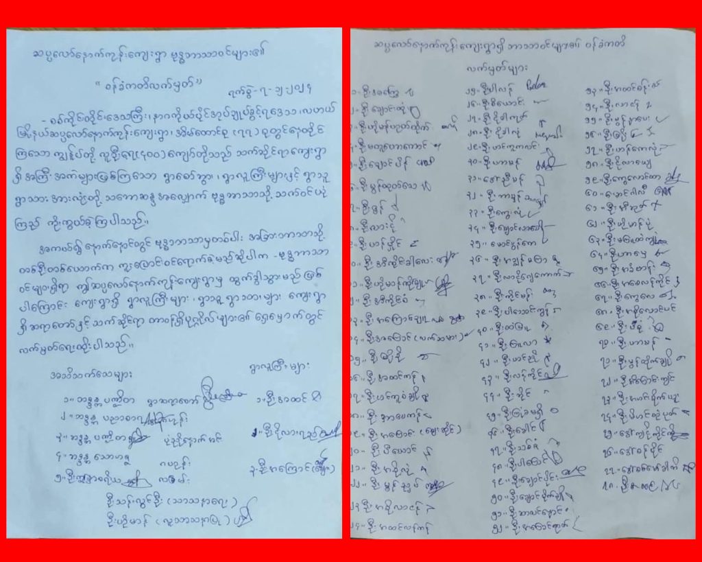 “ရွာကလူတွေက ဆပ္ပလော်နောက်ကုန်းရွာဟောင်းကနေ ရွာသစ်ကို ရွှေ့လာကတည်းက ဗုဒ္ဓဘာသာပြောင်းမယ်ဆိုတဲ့ရည်ရွယ်ချက်နဲ့ ဦးဇင်းတာဝန်ကျတဲ့ ဆပ္ပလော်နောက်ကုန်းရွာသစ်ကို ရွှေ့လာကြတာပါ။ ဦးဇင်းလက်ထက်မှာ ဗုဒ္ဓဘာသာဖြစ်တာမဟုတ်ပါဘူး။ အရင်ကတည်းက ဗုဒ္ဒဘာသာပါ။ အဲဒီအထဲမှာတော့ လေးငါးဆယ်အိမ်ကတော့ တချို့ဘာသာ ကိုးကွယ်တာလည်း ရှိတာပေါ့။ ကိုယ့်လက်ထက်မှာတော့ ကိုယ့်စွမ်းဆောင်မှုကို နှစ်သက်တဲ့အတွက် ဗုဒ္ဓဘာသာထဲ ပြန်ပြောင်းလာတဲ့အတွက် တစ်ရွာလုံးလိုလိုက ဗုဒ္ဓဘာသာပေါ့။ ဗုဒ္ဓဘာသာခံယူတာပေါ့။ အဲဒီထဲမှာ အသက် ၇၅ နှစ်ရှိတဲ့ ဒါယကာကြီးလင်မယားကတော့ သူတို့အသက်လည်းကြီးပြီ။ ဘာသာလည်းမပြောင်းချင်တော့ဘူး။ သူတို့ ခရစ်ယာန်ဘ၀နဲ့နေမယ်ဆိုတော့ သူတို့လည်း ကိုယ် ဖိအားမပေးပါဘူး။ အခု ဆန်ဝေပေးတဲ့အထဲမှာ သူတို့ပါပါတယ်။ ဒါပေမဲ့ လက်မှတ်ထိုးတဲ့အထဲ(ဗုဒ္ဓဘာသာမှ တခြားဘာသာမပြောင်းလဲကြောင်း)သူတို့မပါပါဘူး။ တကယ်တမ်းသာ သူတို့ပါ ဘာသာပြောင်းခိုင်းမယ်ဆို သူတို့ကို ဖိအားပေးမှာပေါ့။ ဒါပေမဲ့ ဖိအားမပေးခဲ့ပါဘူး။ လက်မှတ်ထိုးဖို့ဆိုတာကလည်း နဂိုကတည်းက တိုင်ပင်ထားပြီးသားပါ။ ဒီဘက်တွေမှာ တခြားဘာသာခြားရွာတွေကလည်း သူတို့ဘာသာတည်တံ့ရေးအတွက် လုပ်တယ်။ တခြားရွာက တခြားဘာသာဝင်က သူတို့ရွာလာနေရင် သူတို့ဘာသာထဲပဲဝင်ရတယ်။ ဒီဘက်မှာက နိုင်ငံတော်ရဲ့ စည်းမျဉ်းစည်းကမ်းဆိုတာထက် ကိုယ့်ရွာကိုယ့်စည်းကမ်းနဲ့ နေကြတာ”လို့ အရှင်ပဏ္ဍိတက MT News ကို ရှင်းပြပါတယ်။
