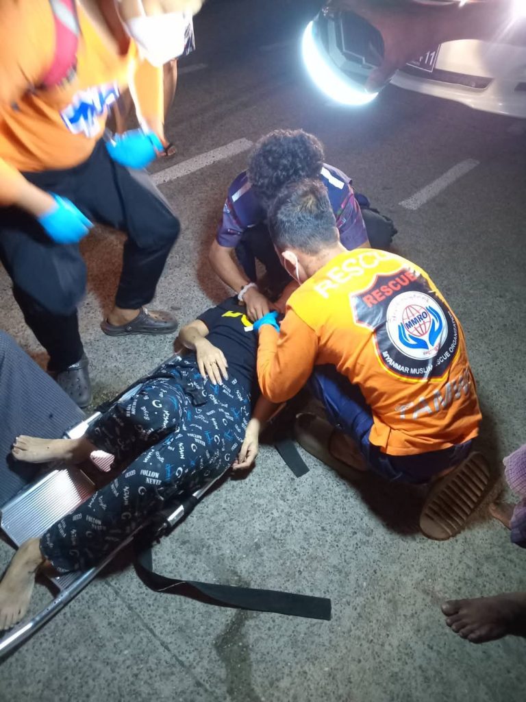 ထိုဖြစ်စဥ်သို့ YRO ၏ အဖွဲ့ဝင် ” မြန်မာမွတ်စလင်မ် “- ပရဟိတအဖွဲ့ (တာမွေ)မှ စေတနာ့ဝန်ထမ်းများသွားရောက်ကူညီခဲ့ရာ ပြုတ်ကျသည့် အမျိုးသမီးမှာ ပါးစောင်ကွဲ၊ ပခုံးရိုးကျိုး၊ ခြေထောက်ကျိုးသည့် ဒဏ်ရာများ ရရှိခဲ့သဖြင့်လူနာအား ဖြစ်စဥ်နေရာမှာ ” အထွေထွေရောဂါကုဆေးရုံ(လမ်းမတော်) ” YGH-သို့ ကူညီပို့ဆောင်ပေးခဲ့သည်ဟု သိရသည်။