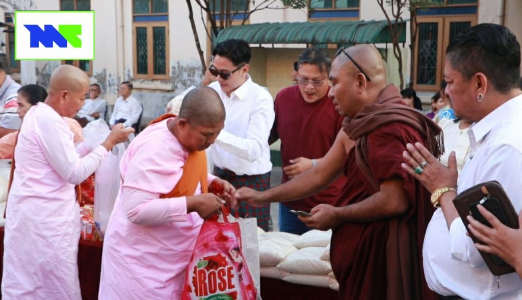 အလိုတော်ပြည့်ဆရာတော်ကြီးကို ဦးထိပ်ထားလျှက် ဆရာတော်ရဲ့ တပည့်ရင်း အသျှင်ကုမာရ (ခ) ဦးဇင်းဘီလူးဦးစီးပြီး စေတနာရှင် အလှူရှင် သရုပ်ဆောင် အဆိုတော်တွေက နှစ်သစ်မင်္ဂလာ အလှူတော်မင်္ဂလာပွဲတော်ကို ပြာသိုလပြည့်နေ့ ရှင်တစ်ထောင် အခါတော်နေ့အဖြစ် သောတုဇန စာသင်သား သံဃာတော်တွေ သီလရှင်တွေနဲ့ မရှိဆင်းရဲသားဆိုက္ကားသမားတွေကို ဆွမ်းဆန်စိမ်း၊ အခြေခံစားသောက်ကုန်လှူဒါန်းခြင်းကို ဒီ ညနေပိုင်းက ရန်ကုန်မြို့ တာမွေမြို့နယ်ရှိ အလိုတော်ပြည့်ကျောင်းတိုက်မှာ ကျင်းပခဲ့ပါတယ်။