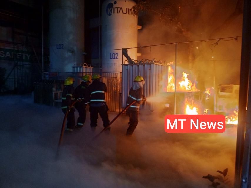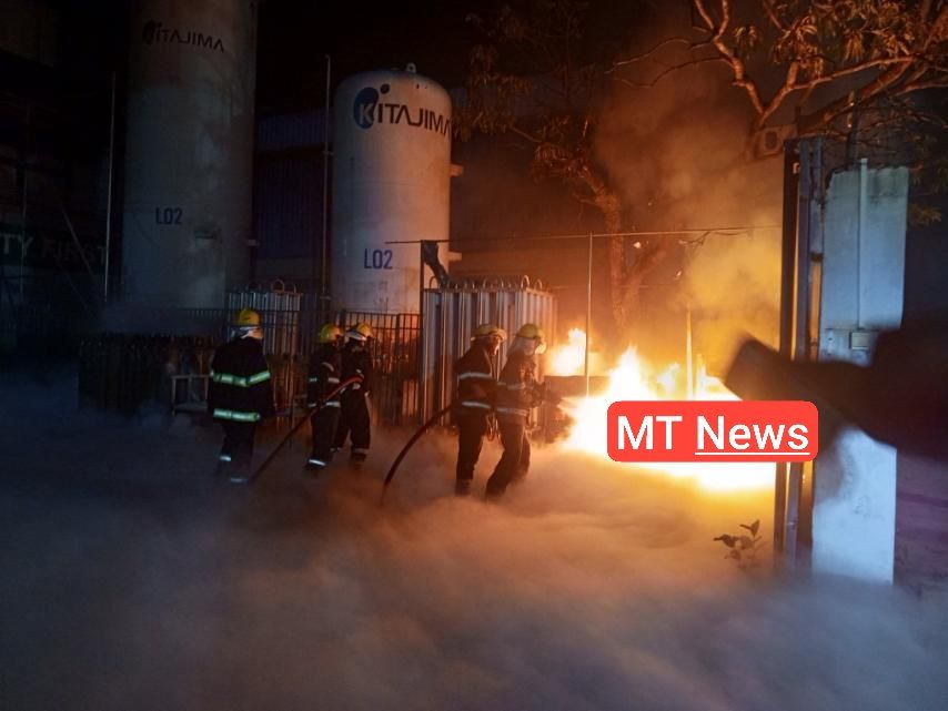ယနေ့ ည ၇ နာရီ ၁ မိနစ် အချိန်ခန့်က ရန်ကုန်တိုင်းဒေသကြီး၊ သာကေတမြို့နယ်၊ စက်မှုလက်မှုရပ်ကွက်၊ မြိုင်ဟေဝန်လမ်းရှိ KITAJIMA အောက်ဆီဂျင်စက်ရုံခြံဝန်းတွင် ဇန်နဝါရီလ ၁၄ ရက် ည ၇ နာရီခန့်က မီးလောင်မှုဖြစ်ပွားခဲ့ကြောင်း မီးငြှိမ်းသတ်သူများထံမှ သိရသည်။