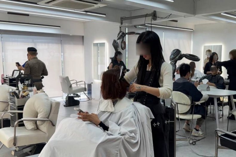 ရဲတပ်ဖွဲ့ဝင်တွေက ဆိုင်ထဲမှာ ထိုင်းနိုင်ငံသားတွေရော၊ နိုင်ငံခြားသားတွေပါ ဆံပင်ညှပ်သမားတွေအဖြစ် အလုပ်လုပ်နေတာ တွေ့ခဲ့ကြပါတယ်။ ဆံပင်ညှပ်ဖို့ စောင့်ဆိုင်းနေသူတွေလည်း တွေ့ခဲ့ရတယ်လို့ ဆိုပါတယ်။
