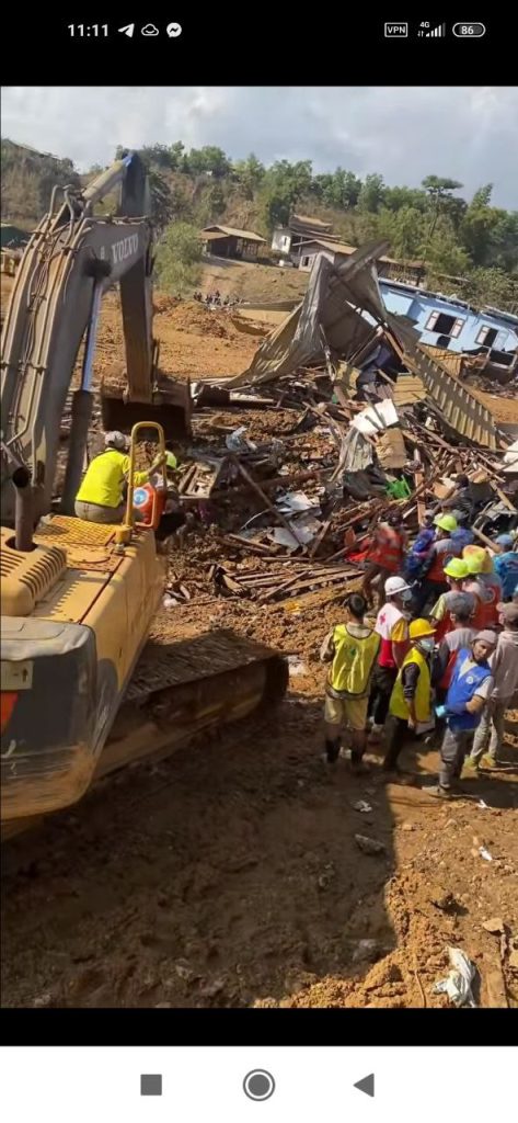 “သေဆုံးသူတွေရဲ့ ရုပ်အလောင်းက ၃၁ လောင်း အထိ ရရှိဆယ်ယူထားပါတယ်။ အလောင်းတွေက မြေကြီးအောက်မှာဆိုတော့ ခက်ခက်ခဲခဲကို ဖော်ရတယ်။ ကလေးအလောင်းက ၄ လောင်း၊ ကိုယ်ဝန်ဆောင်သည် ၁ ဦးလည်း ဆယ်ယူရရှိပါတယ်”ဟု ရုပ်အလောင်းများကို ဖော်ထုတ်ဆယ်ယူရာတွင် ပါဝင်သူတစ်ဦးက ပြောသည်။