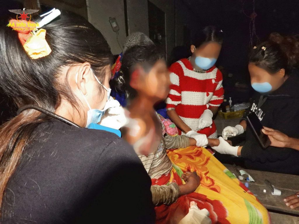 ယမန်နေ့ ဇန်နဝါရီလ ၁၈ ရက် ည ၉ နာရီကျော်အချိန် တပ်မတော်က ဂျက်ဖိုက်တာများဖြင့် ပေါင် ၅၀၀ ဗုံးများ သုံးကြိမ်ကြဲတိုက်ခိုက်ခဲ့ကြောင်း သိရသည်။