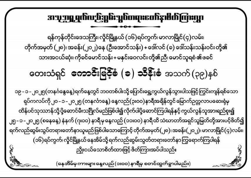 ပုံစာ။ ကွယ်လွန်သူ တေးဆို ကောင်းမြင့်စံ၏ ကြွင်းရစ်သောရုပ်အလောင်းမြင်ကွင်း (ဓာတ်ပုံ – အမုန်း)