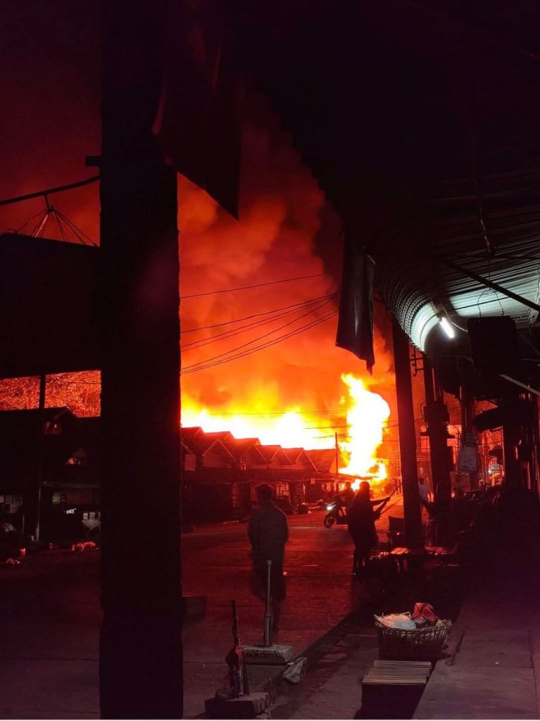 မီးလောင်မှုမှာ ဇန်နဝါရီလ ၁၉ ရက် နံနက် ၁ နာရီ ၁၅ မိနစ်ခန့်က စတင်လောင်ကျွမ်းခဲ့ပြီး တစ်နာရီကျော်ကြာ မီးလောင်မှုတွင် အလျား ၆ ပေ၊ အနံ ၆ ပေရှိ သွပ်မိုး၊ ပျဉ်ကာ၊ ကွန်ကရစ်ခင်း (၁)ထပ် ဈေးဆိုင်ခန်း (၁၁၀)ခန်း မီးလောင်ဆုံးရှုံးခဲ့ကြောင်း သိရသည်။