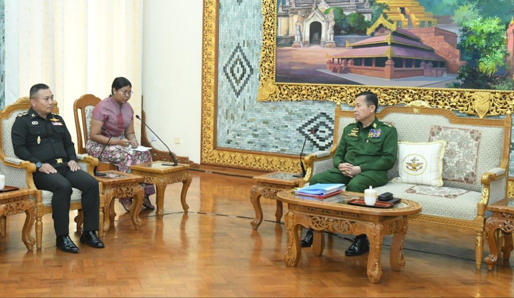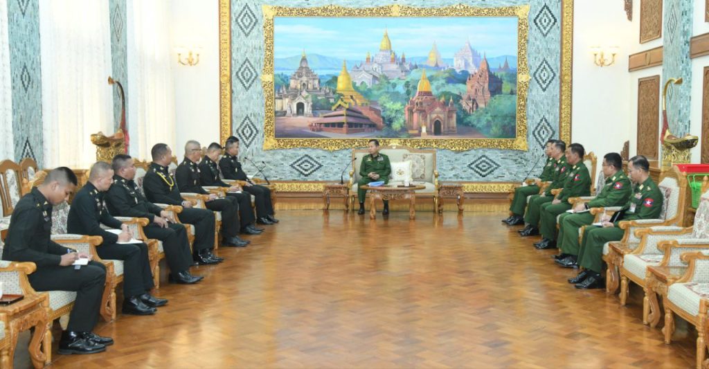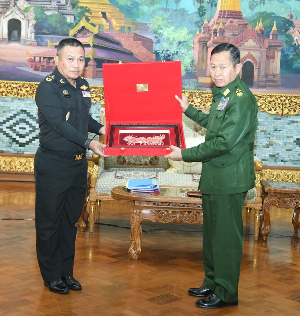 နိုင်ငံတော်စီမံအုပ်ချုပ်ရေးကောင်စီ (SAC) ဒုတိယဥက္ကဋ္ဌ ဒုတိယဗိုလ်ချုပ်မှူးကြီးစိုးဝင်းသည် ထိုင်းဘုရင့်ကြည်းတပ်ဦးစီးချုပ်ရုံး၊ အကြံပေးဘုတ်အဖွဲ့ဥက္ကဋ္ဌနှင့် Army Operations Center Neighboring Countries Coordination Center (NCCC) ဌာနတာဝန်ခံ General Direk Bongkarn ဦးဆောင်သည့် ကိုယ်စားလှယ်အဖွဲ့အား ယနေ့တွင် နေပြည်တော်ရှိ ဘုရင့်နောင်ရိပ်သာဧည့်ခန်းမဆောင်၌ လက်ခံတွေ့ဆုံခဲ့သည်။