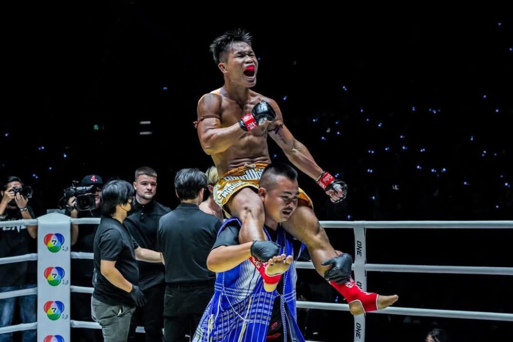 သန့်ဇင်လို ဒရာမာတွေမခင်း မျက်ရည်မခြူ ကံခေလို့သာ နာမည်ကြီးခွင့်တွေနဲ့ လွဲချော်နေရတဲ့ မိုးထက်အောင်ဟာ Family Wan Chai ရဲ့ လက်ထွက်ပီပီ စုစုပေါင်း ၃၅ ပွဲထိုးသတ်ထားရာမှာ ၁ ပွဲပဲရှုံးနိမ့်ထားပြီး One မှာ ထိုးသတ်တဲ့ နှစ်ပွဲမှာ တစ်ပွဲကို အလူးအလဲခံနေရာကနေ အလဲထိုးအနိုင်ရလို့ ဘောနပ် ဘတ် ၃၅၀၀၀၀ ရခဲ့သလို တစ်ပွဲကိုတော့ ဒိုင်အများစုဆုံးဖြတ် ချက်အရ အမှတ်နဲ့နိုင်ခဲ့တာပါ။ မိုးထက်အောင်နိုင်ခဲ့တဲ့ ဂျပန်ဖိုက်တာ မာရုယာမရော ကာဇူကီရောဟာ မိုးထက်အောင်ထက် လက်ရည်သာတယ်လို့ သတ်မှတ်ခံရသူတွေဖြစ်ပေမဲ့ မိုးထက်အောင်က လူတကာမထင်မှတ်လောက်အောင် စွမ်းဆောင်ပြခဲ့တာပါ။