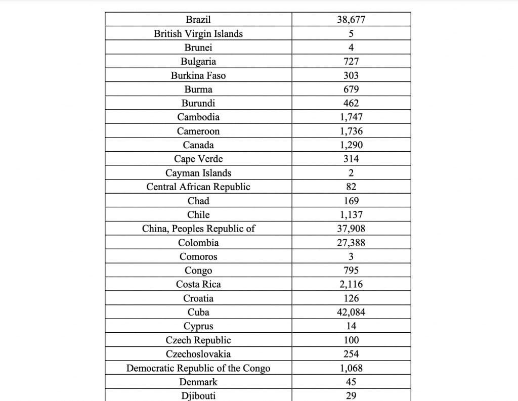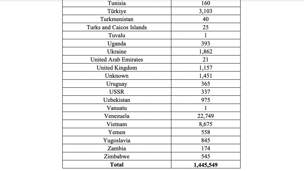 ERO အဖွဲ့၏ထုတ်ပြန်ချက်များအရ ကမ္ဘာတဝှမ်းရှိ နိုင်ငံပေါင်းအနည်းဆုံး ၁၆၃ နိုင်ငံမှ နိုင်ငံသားများသည် Non-Detained Docket with Final Orders of Removal အမိန့်အရ မိခင်နိုင်ငံသို့ ပြန်ပို့ခံရမည်ဖြစ်ပြီး မိခင်နိုင်ငံသို့ပြန်ပို့ခံရမည့်သူများထဲတွင် မက္ကဆီကိုနိုင်ငံသားအများဆုံးဖြစ်ကာ ၂၅၂၀၄၄ ဦးဖြစ်ကြောင်း သိရသည်။