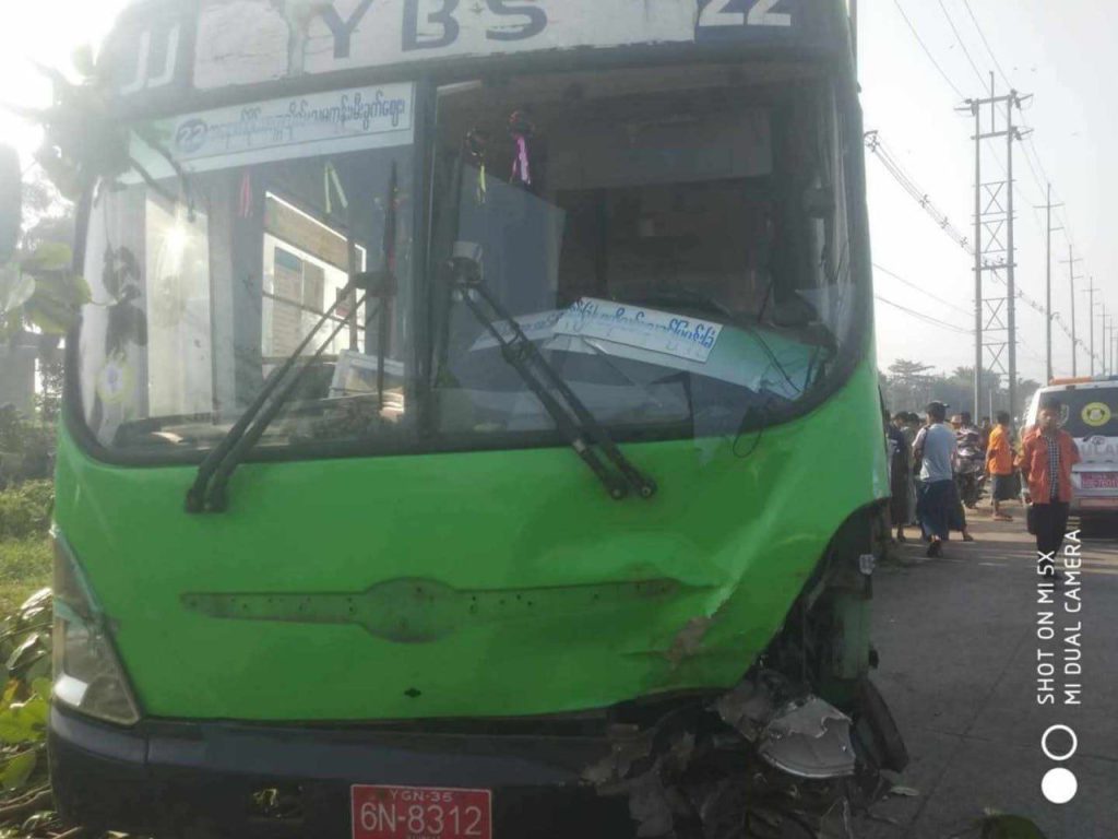 ကြိုပို့ယာဥ်နဲ့ YBS – ၂၂ ယာဥ်တို့ တိုက်မိမှုဖြစ်ပွားရာမှာ လမ်းဘေးထိုင်နေသူ လူငယ်က ဒဏ်ရာမပေါ်ဘဲ သေဆုံးခဲ့ရပေမဲ့ ယာဥ်ပေါ်ပါ လူအားလုံးက ဘေးကင်းခဲ့ပြီး ထိခိုက်ဒဏ်ရာရသူမရှိဘူးလို့လည်း သိရပါတယ်။