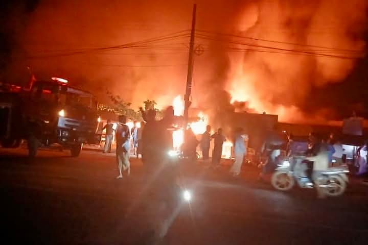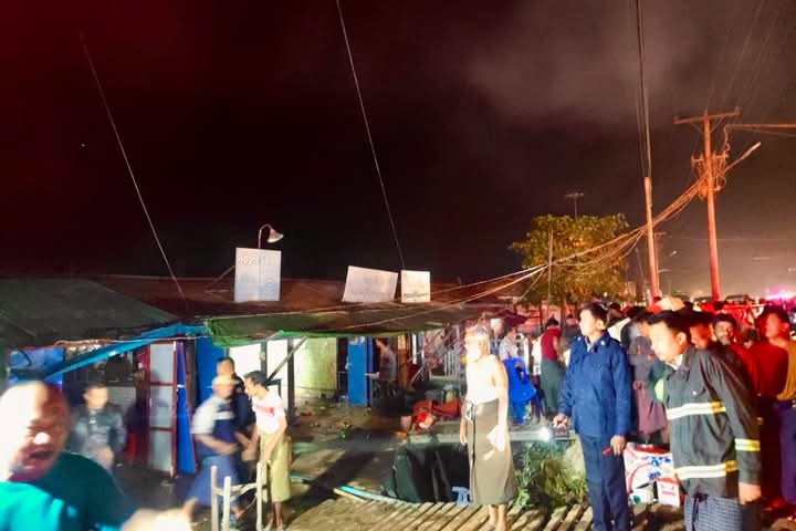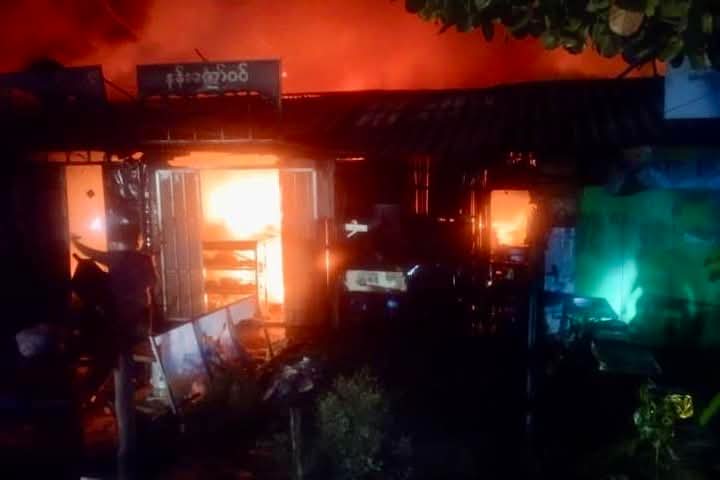 ပုံစာ။ ဘုရားကြီးမြို့မစျေး မီးလောင်နေမှုမြင်ကွင်းများ (Photo – MFSD & Thet Phyoe Kyaing)