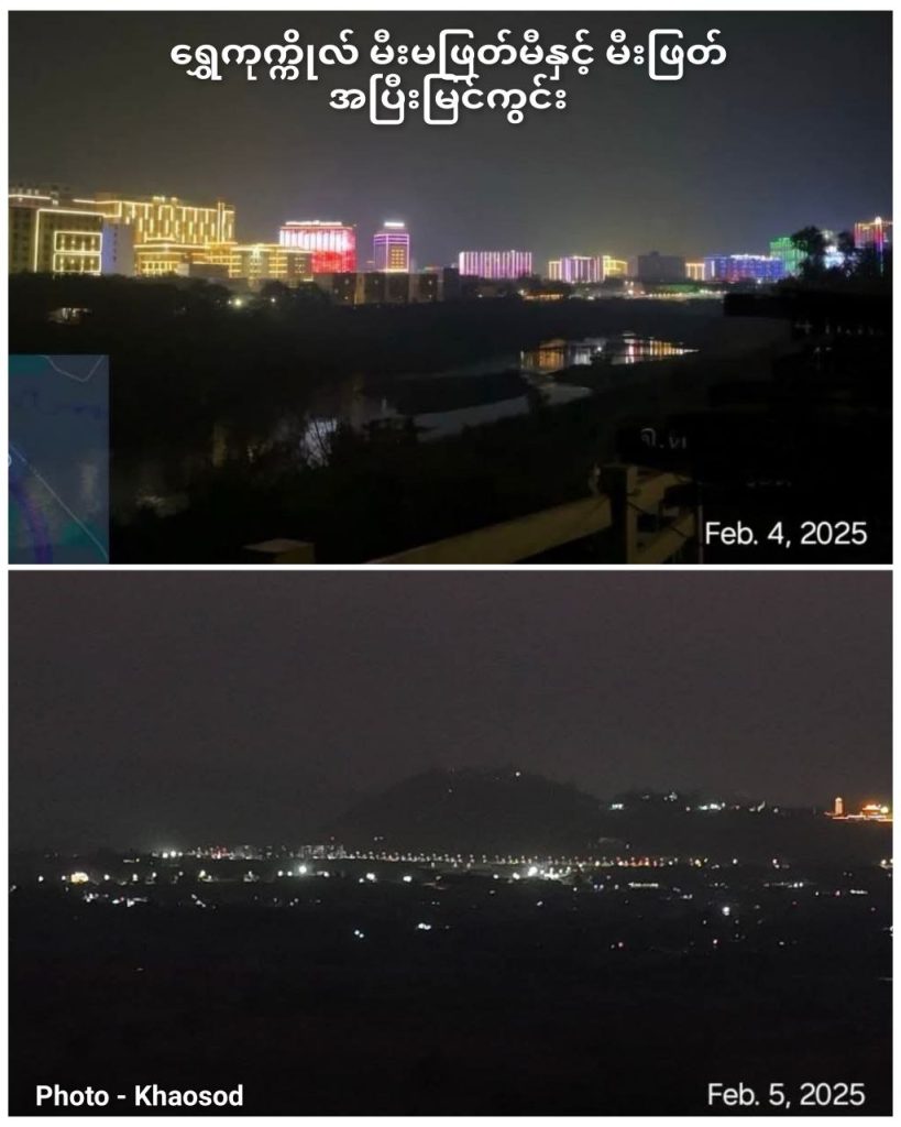 ပုံစာ။ မြန်မာဘက်ခြမ်းမှ ကျားဖြန့်နာမည်ကျော် နေရာငါးခုကို ထိုင်းနိုင်ငံက လျှပ်စစ်စတင်ဖြတ်တောက်သည့် ဖေဖော်ဝါရီ ၅ ရက်ည ရွှေကုက္ကိုလ်နှင့်တာချီလိတ် မြင်ကွင်းများ