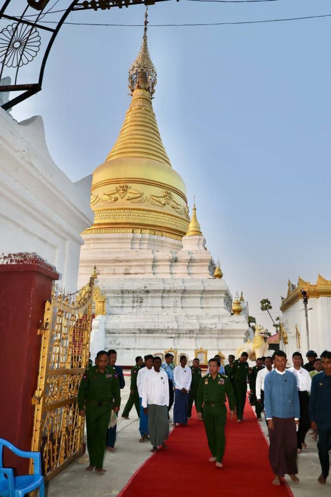 မန္တလေးတိုင်းဒေသကြီး၊ အင်းဝမြို့ဟောင်းရှိ လောက သရဖူဘုရားကြီးနှင့် မောင်အိုအုတ်လမ်း ထိန်းသိမ်းထားရှိမှုအခြေအနေများကို နိုင်ငံတော်စီမံအုပ်ချုပ်ရေးကောင်စီ (SAC) ဥက္ကဋ္ဌ ဗိုလ်ချုပ်မှူးကြီး မင်းအောင်လှိုင်သည် ဖေဖော်ဝါရီလ ၇ ရက်တွင် သွားရောက်ကြည့်ရှုစစ်ဆေးသည်။