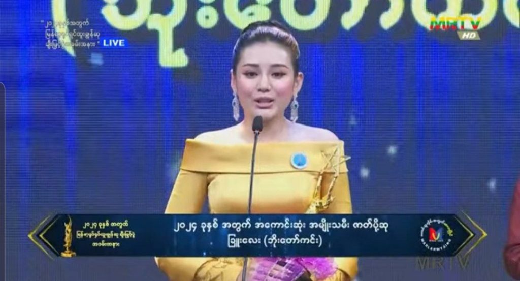 ၂၀၂၄ ခုနှစ်အတွက် မြန်မာ့ရုပ်ရှင်အကယ်ဒမီထူးချွန်ဆုပေးပွဲမှာ အကောင်းဆုံး အမျိုးသမီးဇာတ်ပို့ဆုကို ခြူးလေးက ဘိုးတော်ကင်း ရုပ်ရှင်ဇာတ်ကားနဲ့ အကယ်ဒမီဆုကို ဆွတ်ခူးခဲ့ပါတယ်။