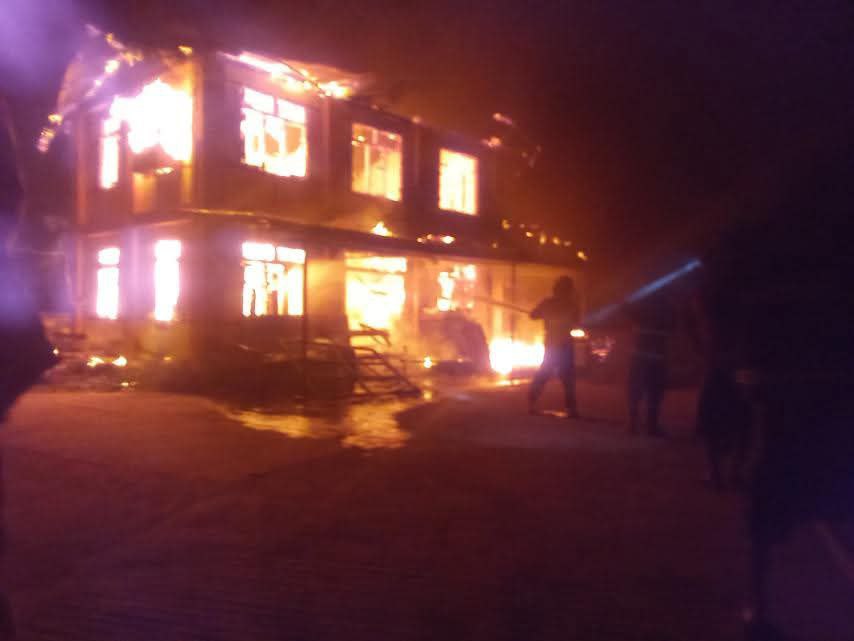 အလျား ပေ ၃၀၊ အနံ ၁၇ ပေခန့်ရှိသော သွပ်မိုး၊ နံရံကာ၊ ပျဥ်ခင်း ၂ ထပ်နေအိမ်ကို မသမာသူတစ်ဦးက အပြင်မှ မီးတုတ်ဖြင့် ပစ်ပေါက်ခဲ့ရာ အိမ်တံခါးမကြီးဘေးရှိ ကော်ခုံများပေါ်ကျ၍ မီးကူးစက်လောင်ကျွမ်းခဲ့ကြောင်း စစ်ဆေးသူများထံမှ သိရသည်။