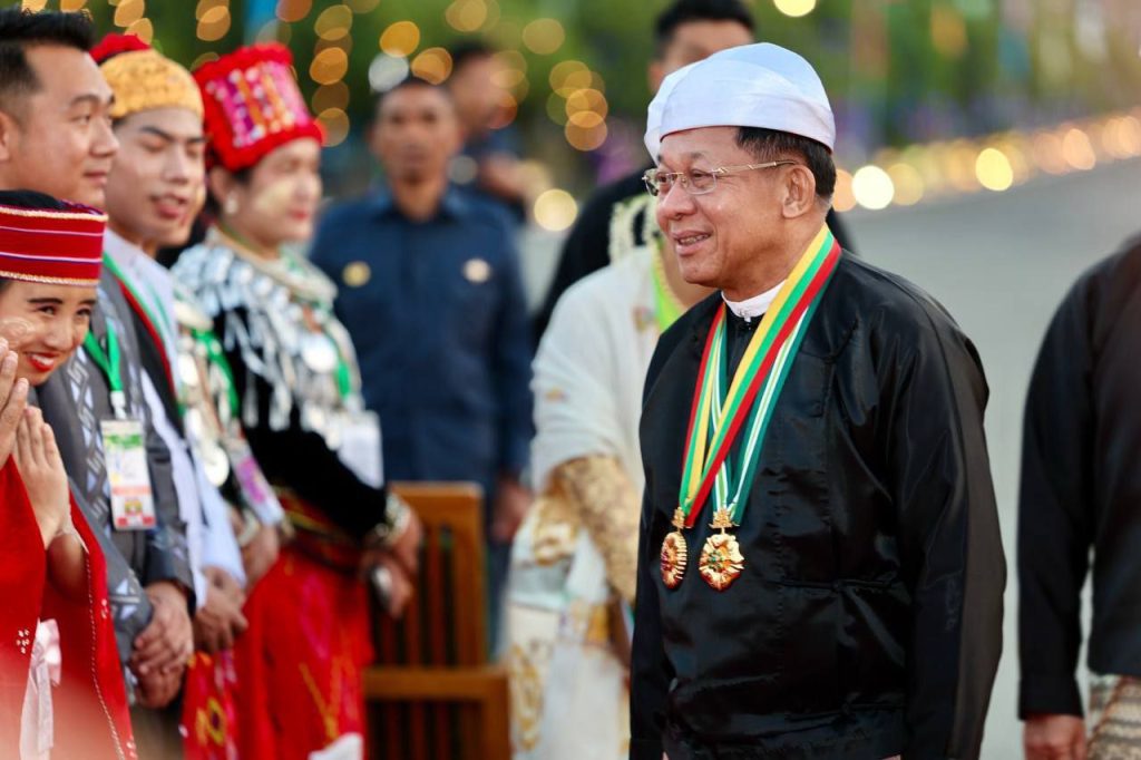 ထို့နောက် SAC ဥက္ကဋ္ဌနှင့်ဇနီး၊ SAC ဒုတိယဥက္ကဋ္ဌနှင့်ဇနီးတို့က တက်ရောက်လာကြသည့် တိုင်းဒေသကြီးနှင့် ပြည်နယ်များမှ တိုင်းရင်းသားရိုးရာ ယဉ်ကျေးမှုအဖွဲများ၊ နိုင်ငံရေးပါတီများမှ ဥက္ကဋ္ဌများနှင့် ကိုယ်စားလှယ်များ၊ NCA စာချုပ် လက်မှတ်ရေးထိုးထားသည့် တိုင်းရင်းသားလက်နက်ကိုင် အဖွဲအစည်းများမှ ခေါင်းဆောင်များနှင့် ကိုယ်စားလှယ်များ၊ တိုင်းဒေသကြီးနှင့် ပြည်နယ်များမှ စီးပွားရေးရာဝန်ကြီးများနှင့် တိုင်းရင်းသားလူမျိုးရေးရာဝန်ကြီးများ၊ တိုင်းဒေသကြီးနှင့် ပြည်နယ်များမှ MSME လုပ်ငန်းရှင်များ၊ ကာကွယ်ရေးဦးစီးချုပ်ရုံးမှ အဆင့်မြင့်တပ်မတော်အရာရှိကြီးများနှင့်ဇနီးများ၊ ပြည်ထောင်စုဝန်ကြီးများ၊ ပြည်ထောင်စုအဆင့် ပုဂ္ဂိုလ်များနှင့်ဇနီးများ၊ နိုင်ငံတော်စီမံအုပ်ချုပ်ရေးကောင်စီဝင်များနှင့်ဇနီးများ၊ ကောင်စီတွဲဖက်အတွင်းရေးမှူးနှင့်ဇနီး၊ အတွင်းရေးမှူးနှင့်ဇနီးတိုအား ရင်းရင်းနှီးနှီးနှုတ်ဆက်ခဲ့သည်။