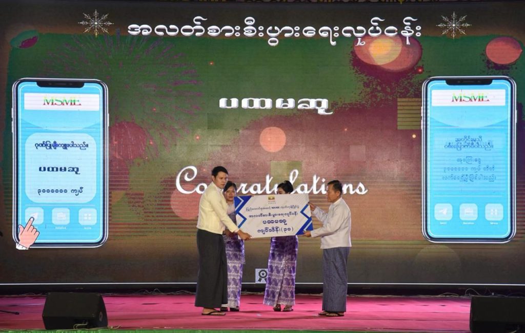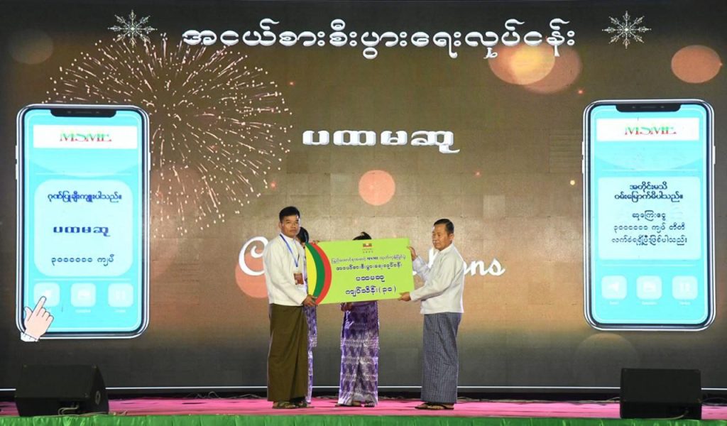 ပြည်ထောင်စုအဆင့် MSME ထုတ်ကုန်ပြပွဲနှင့်ပြိုင်ပွဲ၏ ဆုချီးမြှင့်ခြင်း အခမ်းအနားကို ယမန်နေ့ ညနေပိုင်းတွင် နေပြည်တော်ရှိ ဥပ္ပါတသန္တိစေတီတော် တပေါင်းကွင်း၌ ကျင်းပပြုလုပ်ရာ အသေးစား၊ အငယ်စားနှင့် အလတ်စား စီးပွားရေးလုပ်ငန်းများ ဖွံ့ဖြိုးတိုးတက်ရေးလုပ်ငန်းကော်မတီ ဥက္ကဋ္ဌ နိုင်ငံတော်စီမံအုပ်ချုပ်ရေးကောင်စီ(SAC) ဒုတိယဥက္ကဋ္ဌ ဒုတိယဗိုလ်ချုပ်မှူးကြီးစိုးဝင်း တက်ရောက်၍ ဆုများပေးအပ်ချီးမြှင့်ခဲ့သည်။
