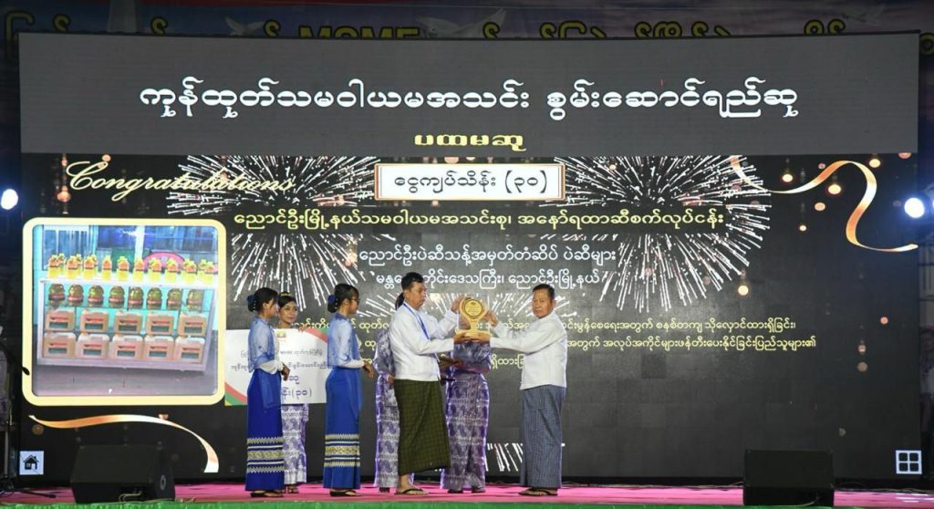 အသေးစား၊ အငယ်စား၊ အလတ်စား စီးပွားရေးလုပ်ငန်းများနှင့် ကုန်ထုတ်သမဝါယမ အသင်းစွမ်းဆောင်ရည် ဒုတိယဆုရရှိကြသူများဖြစ်သည့် အသေးစားထုတ်ကုန်လုပ်ငန်းတွင် ဧရာဝတီတိုင်းဒေသကြီး “M-Treasure” ကွမ်းသီးဖက်ထုတ်ကုန်လုပ်ငန်းမှ ဒေါ်မာလာစန်း၊ အငယ်စားထုတ်ကုန်လုပ်ငန်းတွင် ရန်ကုန်တိုင်းဒေသကြီး “MG Myanmar Gasket” အမျိုးမျိုးထုတ်ကုန်လုပ်ငန်းမှ ဦးဇင်မျိုးထိုက်၊ အလတ်စားစီးပွားရေးလုပ်ငန်းတွင် ပြည်ထောင်စုနယ်မြေ နေပြည်တော် “မြန်မာရွှေသစ်သီးဝလံ” ကုမ္ပဏီလီမိတက်မှ ဒေါ်လဲ့လဲ့ဦးနှင့် ကုန်ထုတ်သမဝါယမအသင်းစွမ်းဆောင်ရည်ဆုရရှိသည့် ရန်ကုန်တိုင်းဒေသကြီး၊ “သီရိစန္ဒာ” အထည်ချုပ်နှင့် အထွေထွေရောင်းဝယ်ရေးသမဝါယမအသင်းမှ တာဝန်ရှိသူများအား သက်ဆိုင်ရာပြည်ထောင်စုဝန်ကြီးများက ဂုဏ်ပြုဆုတံဆိပ်၊ ဂုဏ်ပြုမှတ်တမ်းလွှာနှင့် ဂုဏ်ပြုဆုငွေများပေးအပ်ချီးမြှင့်ခဲ့သည်။