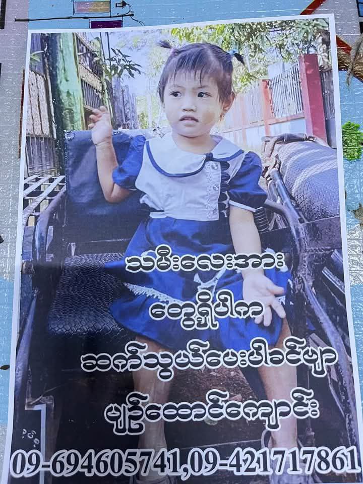 ပျောက်ဆုံးခဲ့သော ကလေးမှာ အသက် ၃ နှစ်အရွယ် မိန်းကလေးဖြစ်ပြီး ဖေဖော်ဝါရီလ ၁၂ ရက်နေ့မှစတင်ကာ ပျောက်ဆုံးခဲ့ခြင်းဖြစ်ကြောင်း ပျောက်ဆုံးသူကလေး၏မိသားစုဝင်တစ်ဦးထံမှ သိရသည်။