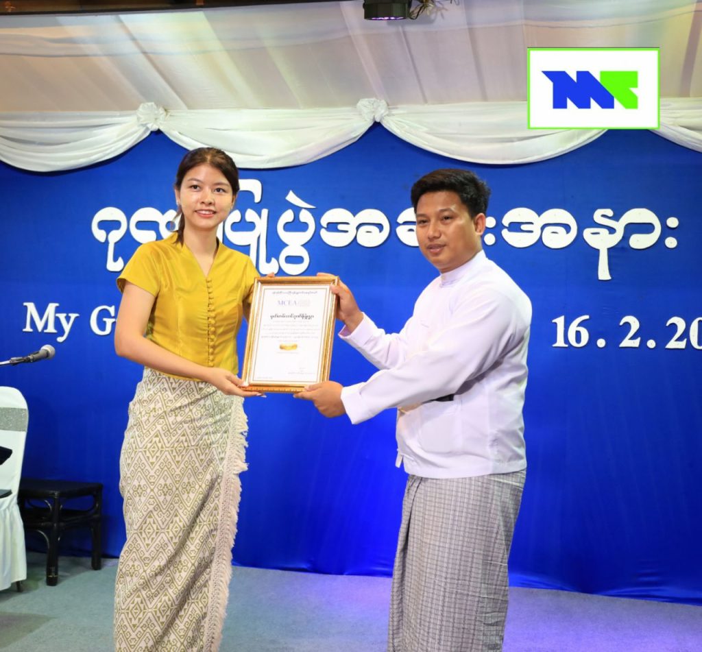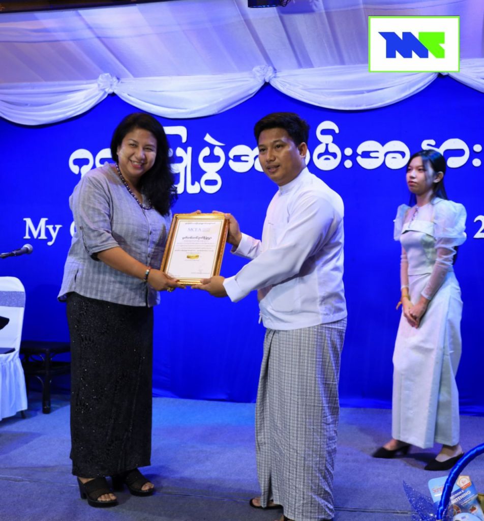 သွေးချင်းစုံလင် သနပ်ခါးသဘင် ပွဲတော်မှာ “သနပ်ခါးသည်ပါရှင့်” ခေါင်းစဉ်နဲ့ ဝင်ရောက်ယှဉ်ပြိုင်ခဲ့တဲ့ ဗမာတိုင်းရင်းသားစာပေယဉ်ကျေးမှုအဖွဲ့က ပြိုင်ပွဲ၀င် မမေမြင့်မိုရ်ကြည်ကို ဂုဏ်ပြုငွေနဲ့ဂုဏ်ပြုလက်မှတ်ပေးအပ်ချီးမြှင့်ခဲ့ပါတယ်။