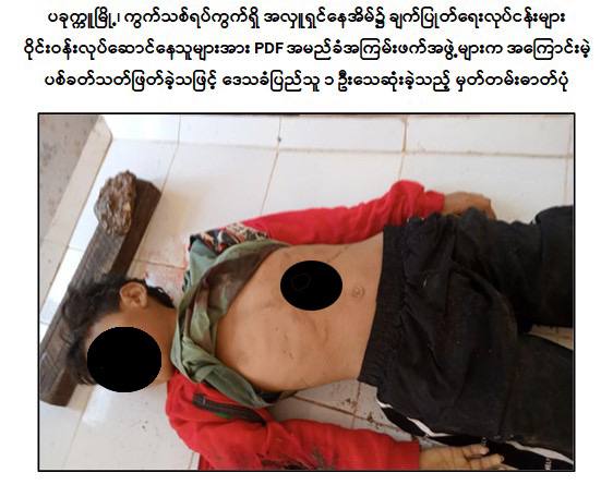 ပခုက္ကူမြို့၊ ကွက်သစ်ရပ်ကွက်ရှိ အလှူရှင်နေအိမ်တွင် ချက်ပြုတ်နေသူများကို PDF အဖွဲ့က လာရောက်ပစ်ခတ်သတ်ဖြတ်သဖြင့် လူငယ်တစ်ဦးသေဆုံးပြီး နှစ်ဦးဒဏ်ရာရခဲ့ကြောင်း သိရသည်။
