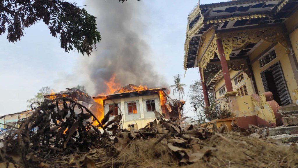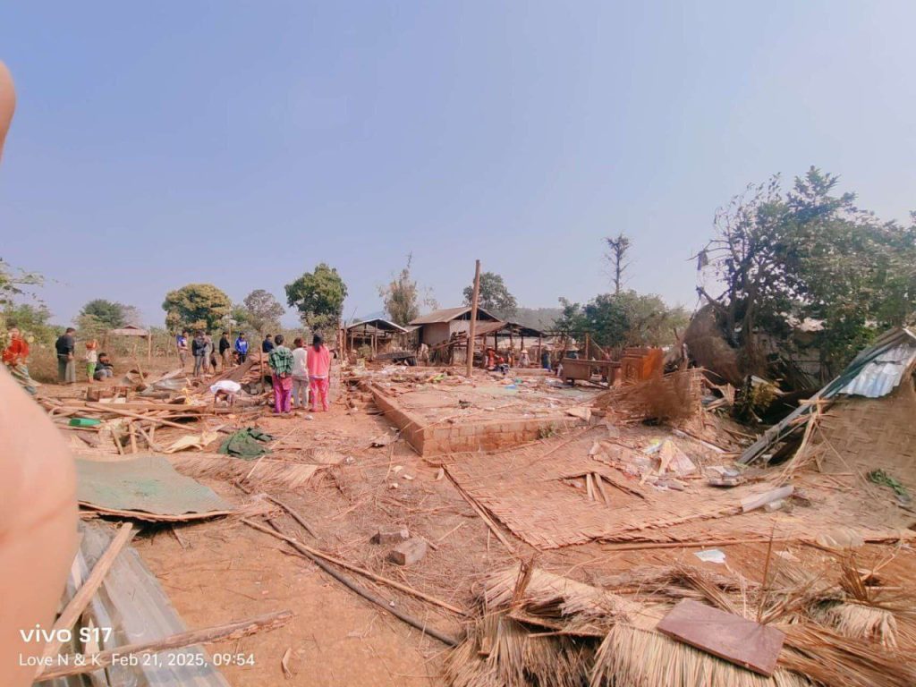 ဒီ ဖေဖော်ဝါရီလ ၂၁ ရက် နံနက် ၁၀ နာရီခွဲအချိန်မှာလည်း ဒရုန်းကိုအသုံးပြုပြီး နောင်ချိုမြို့နယ် အုမ္မတီးကျေးရွာက TNLA လက်နက်ကိုင်တွေ တပ်စခန်းချရာ ဘုန်းကြီးကျောင်းကို ဗုံး (၄)လုံး လာရောက်ကြဲချတိုက်ခိုက်ခဲ့တယ်လို့ သိရပါတယ်။