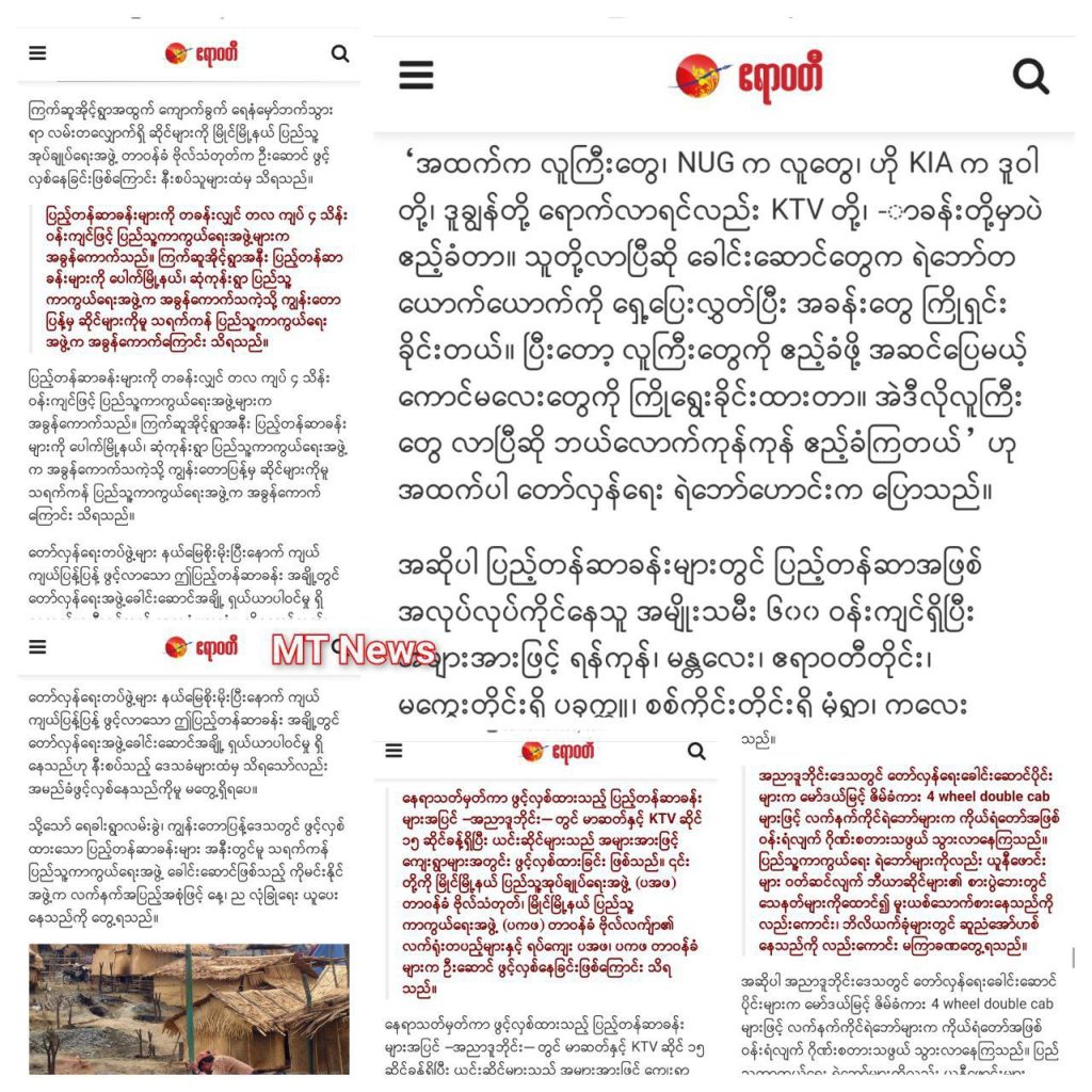 ပုံစာ။ ဧရာဝတီသတင်းဌာနက အညာဒူဘိုင်းဟု ဖော်ပြခဲ့မှု၊ ယနေ့လေကြောင်းတိုက်ခိုက်မှုအပေါ် PDF တို့ တုံ့ပြန်မှုနှင့် လေကြောင်းတိုက်ခိုက်မှုမြင်ကွင်း (Photo/Credit)