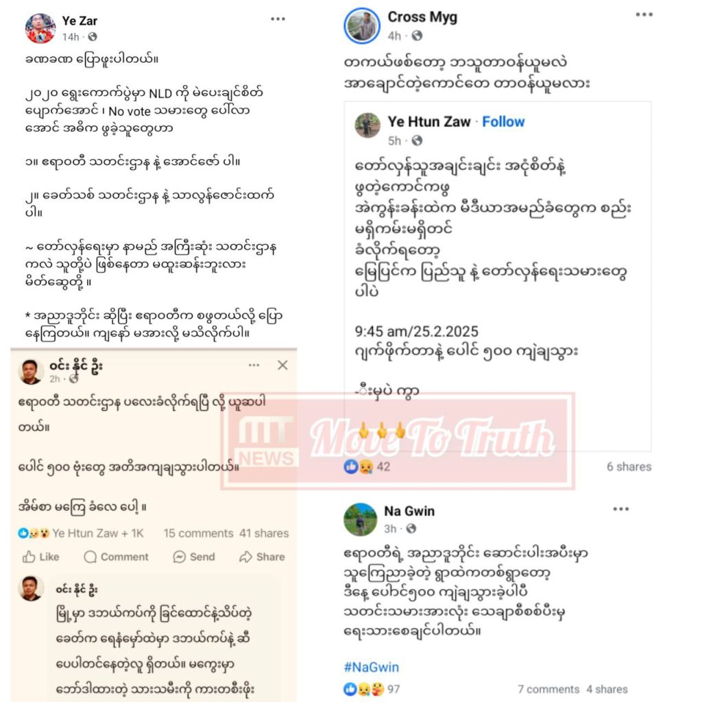“တော်လှန်သူအချင်းချင်း အငုံ့စိတ်နဲ့ ဖွတဲ့ကောင်ကဖွ အဲကွန်းခန်းထဲက မီဒီယာအမည်ခံတွေက စည်းမရှိကမ်းမရှိတင် ခံလိုက်ရတော့ မြေပြင်က ပြည်သူနဲ့ တော်လှန်ရေးသမားတွေပါပဲ 9:45 am/25.2.2025 ဂျက်ဖိုက်တာနဲ့ ပေါင် ၅၀၀ ကျဲချသွား( သတ်ပုံမူရင်း)”လို့ ဆရာဝန်ဘ၀ကနေ လက်နက်ကိုင် PDF ဖြစ်သွားတဲ့ ရဲထွန်းဇော်က ဆိုပါတယ်။