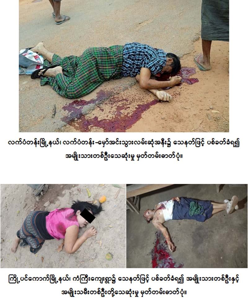 ရပ်ကျေးအုပ်ချုပ်ရေးမှူးဇနီးမောင်နှံအပါအဝင် လူ ၇ ဦးကို PDF များက သတ်ဖြတ်လုယက်မှုများ ပဲခူးတိုင်းဒေသကြီးနှင့် မကွေးတိုင်းဒေသကြီးအတွင်းဖြစ်ပွားခဲ့သည်ဟု ပြည်ထဲရေးဝန်ကြီးဌာနမှ ယနေ့ ထုတ်ပြန်ထားသည်။