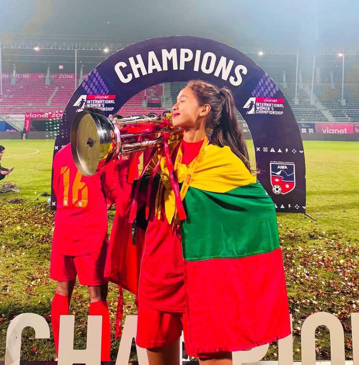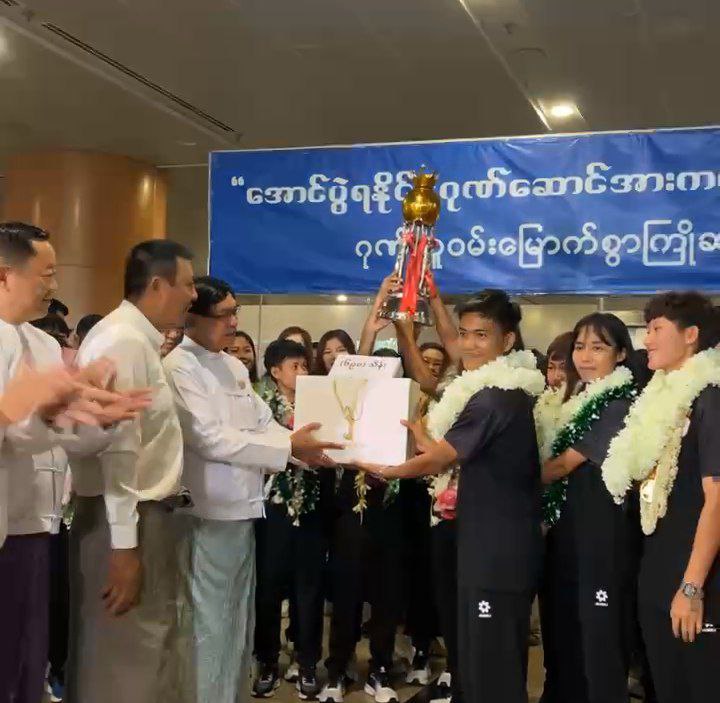 နီပေါနိုင်ငံ၊ ခတ္တမန္ဒုမြို့ရှိ ဒါရှာရတ်ကွင်းတွင် ဖေဖော်ဝါရီ ၁၇ မှ ၂၆ ရက်အထိ ကျင်းပသည့် လေးနိုင်ငံ အမျိုးသမီး ဖိတ်ခေါ်ပြိုင်ပွဲ ဗိုလ်လုပွဲတွင် အိမ်ရှင်နီပေါအသင်းကို နှစ်ဂိုးပြတ်အနိုင်ရကာ ချန်ပီယံဆု ဆွတ်ခူးနိုင်ခဲ့သည့် မြန်မာ့လက်ရွေးစင် အမျိုးသမီးအသင်း အမိမြေသို့ ယနေ့နံနက်တွင် ပြန်လည်ရောက်ရှိလာခဲ့သည်။